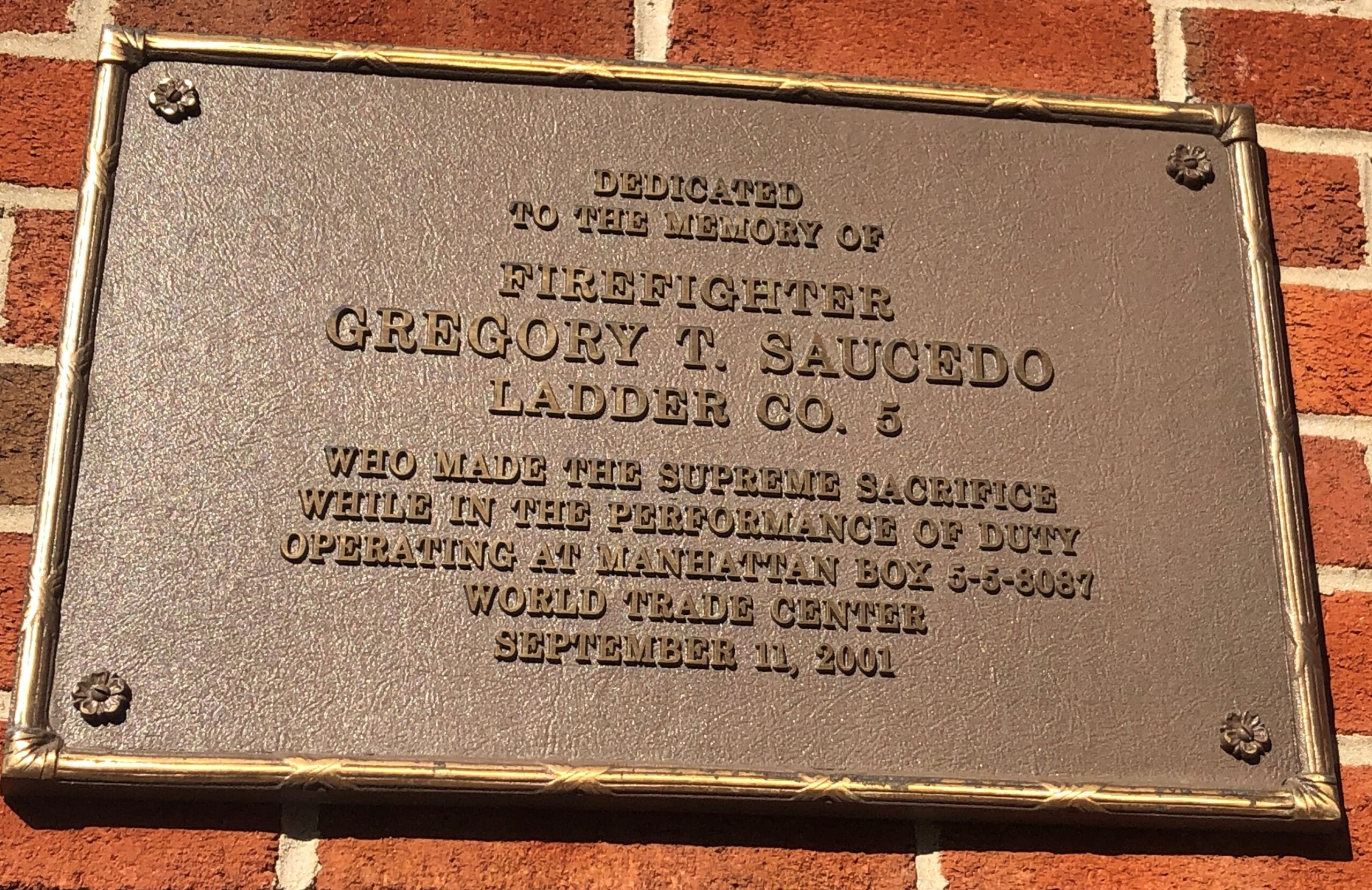 FIREFIGHTER GREGORY T. SAUCEDO MEMORIAL PLAQUE