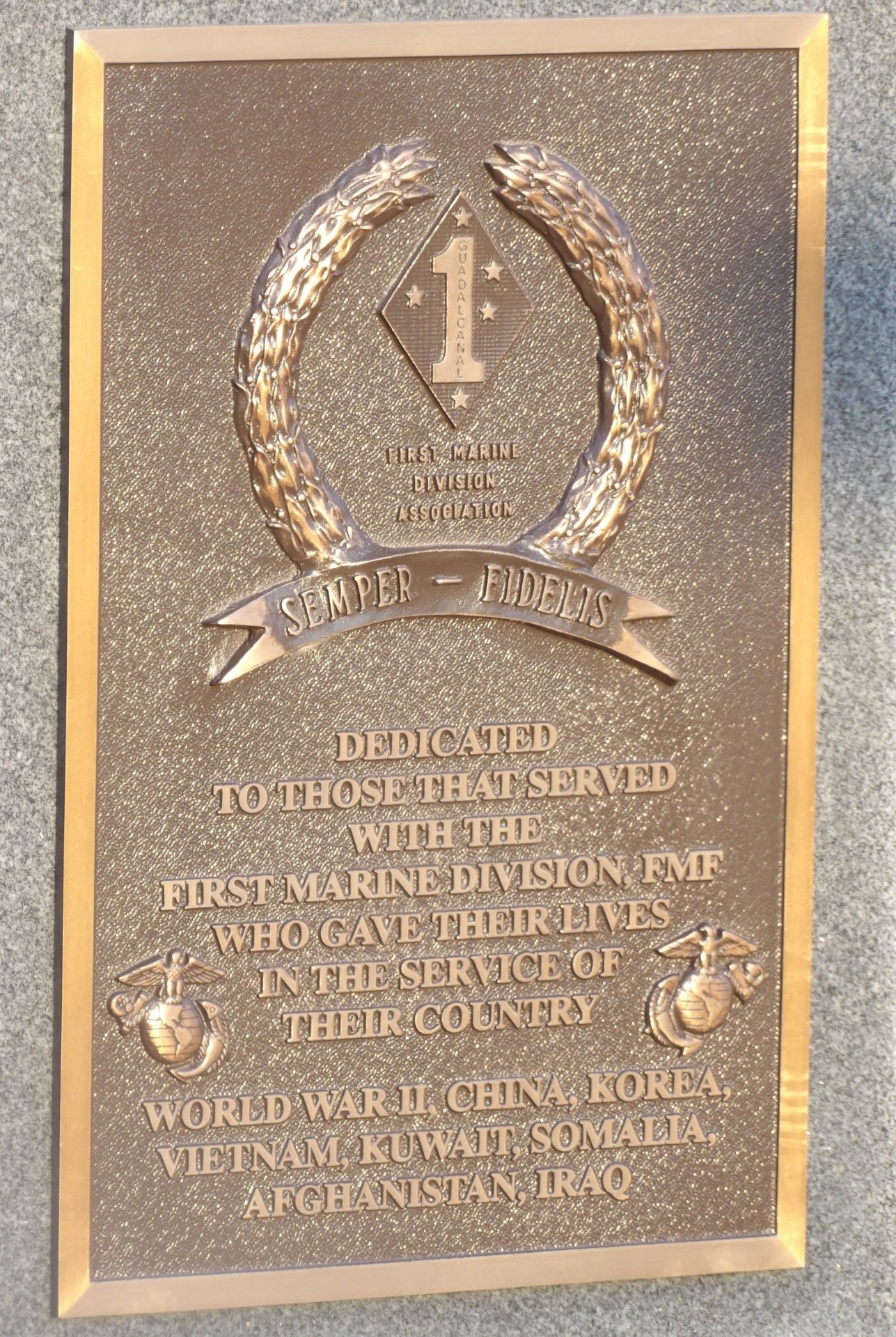 FIRST MARINE DIVISION FMF MEMORIAL PLAQUE