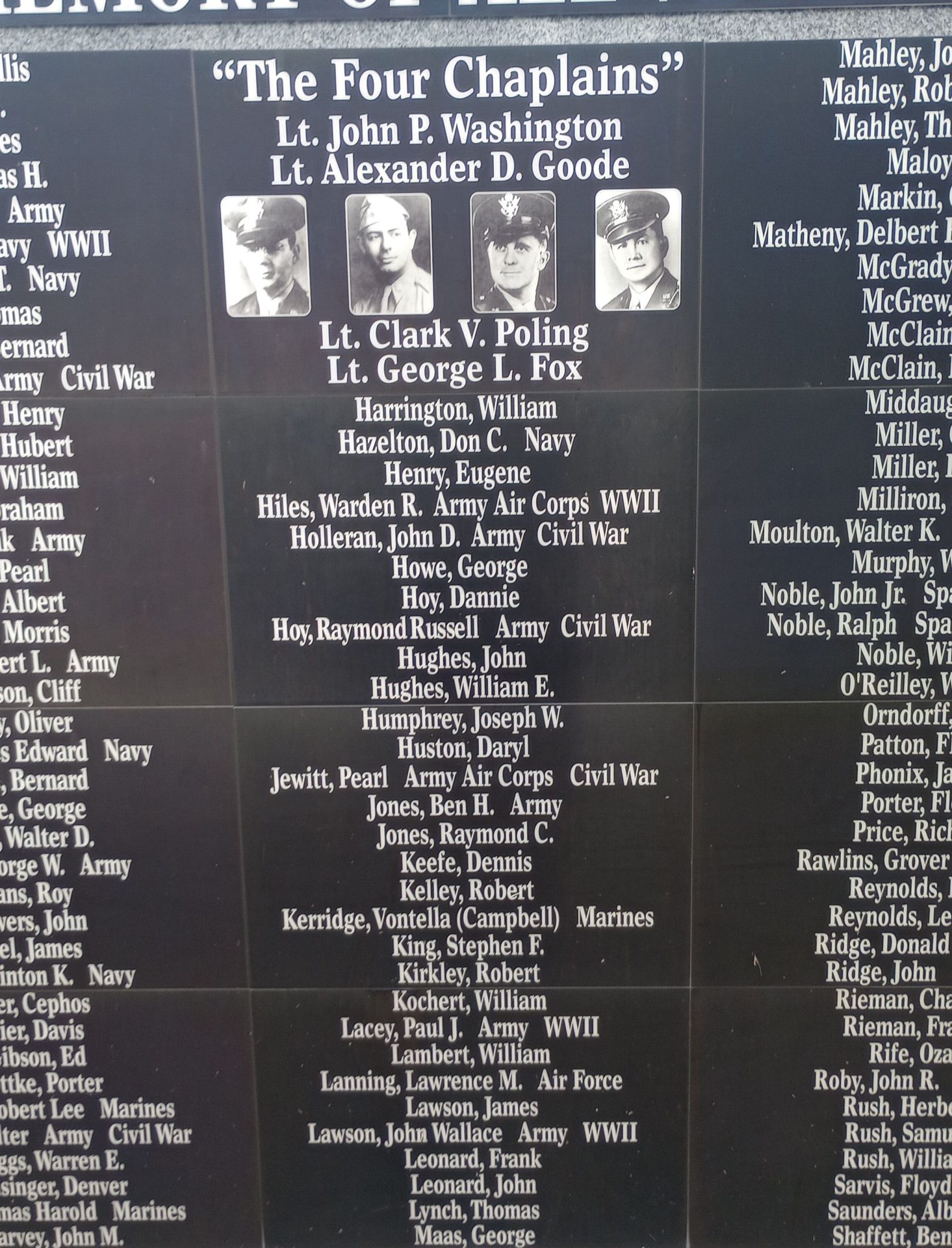 Wars Commemorated: CIVIL WAR, WORLD WAR I AND WORLD WAR II