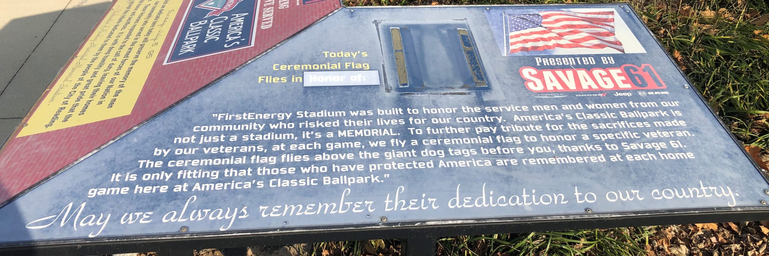 FIRSTENERGY STADIUM WAR MEMORIAL PLAQUE B