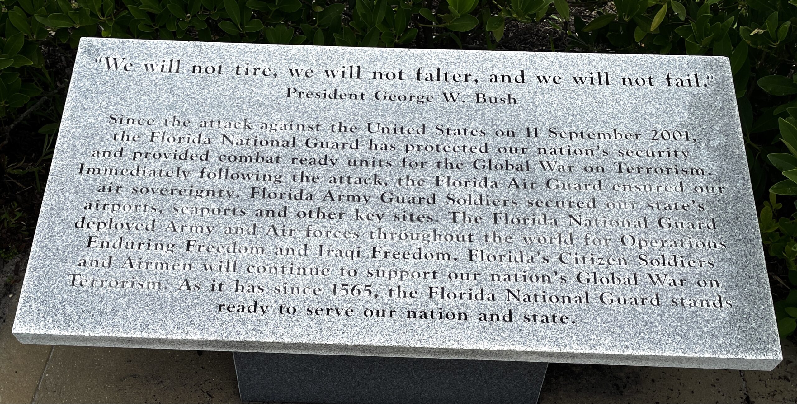 FLORIDA NATIONAL GUARD GLOBAL WAR ON TERRORISM MEMORIAL TABLET