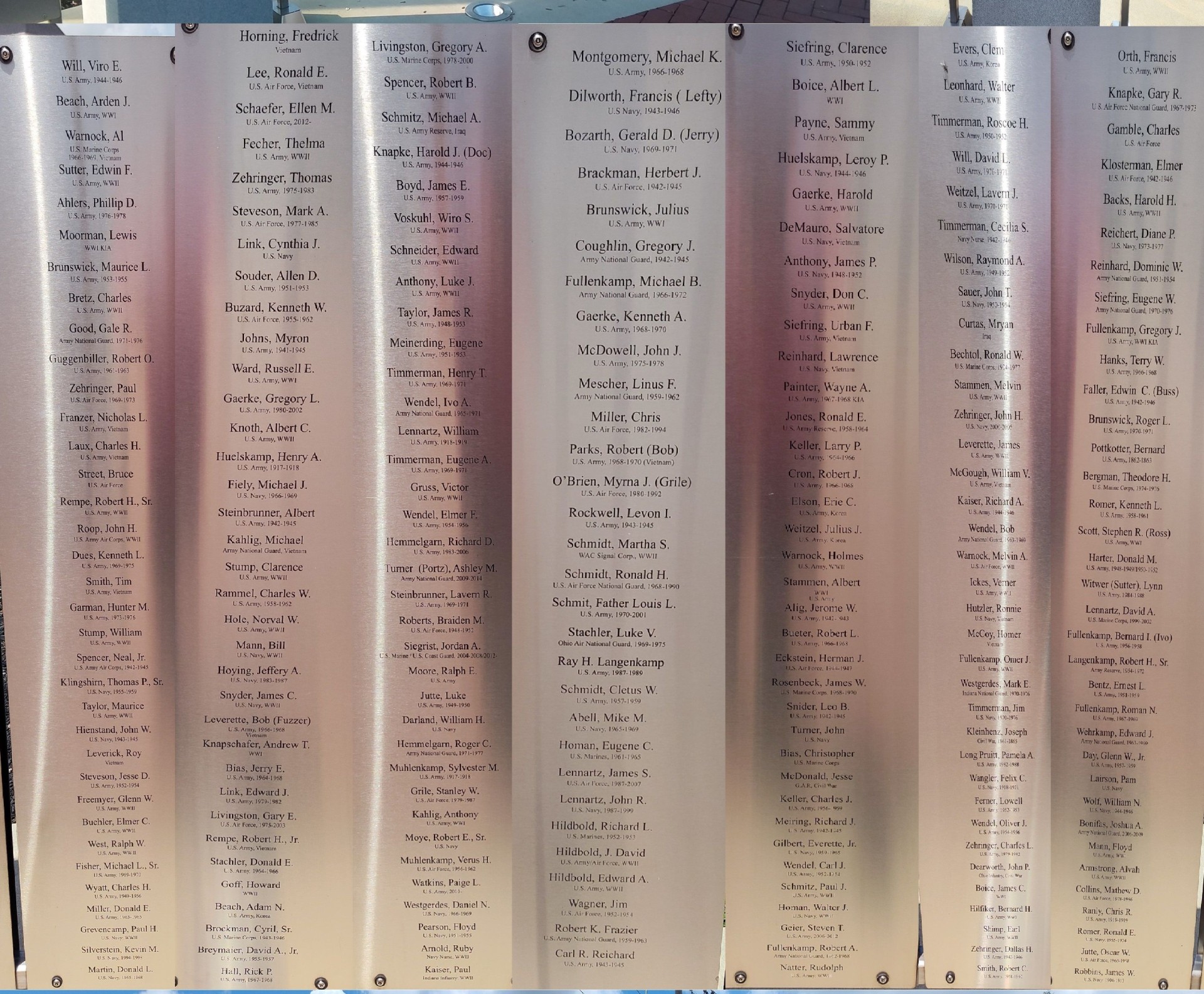 FORT RECOVERY VETERANS PLAZA HONOR ROLL SECTION G
