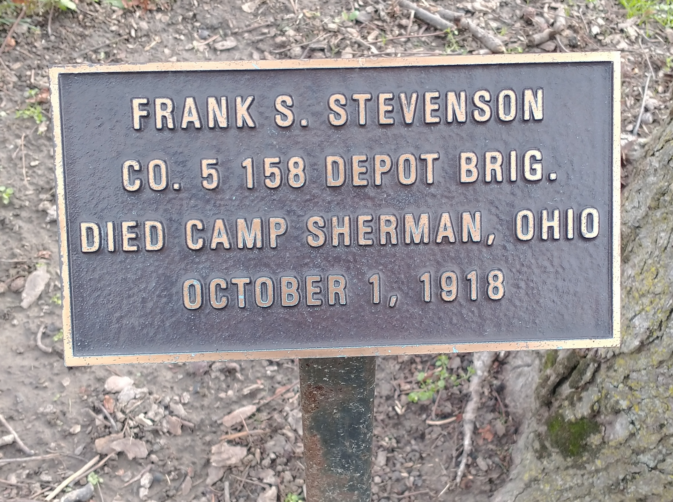 FRANK S. STEVENSON WAR MEMORIAL TREE PLAQUE