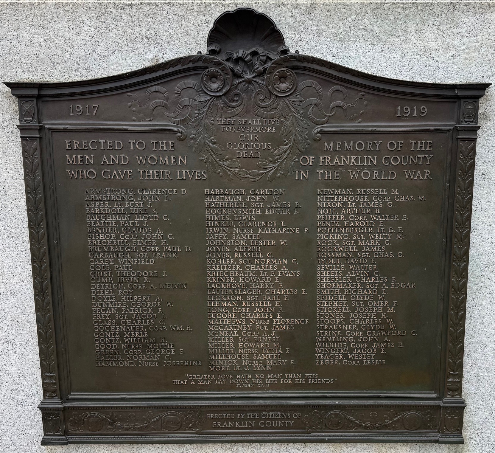 FRANKLIN COUNTY WORLD WAR MEMORIAL PLAQUE A