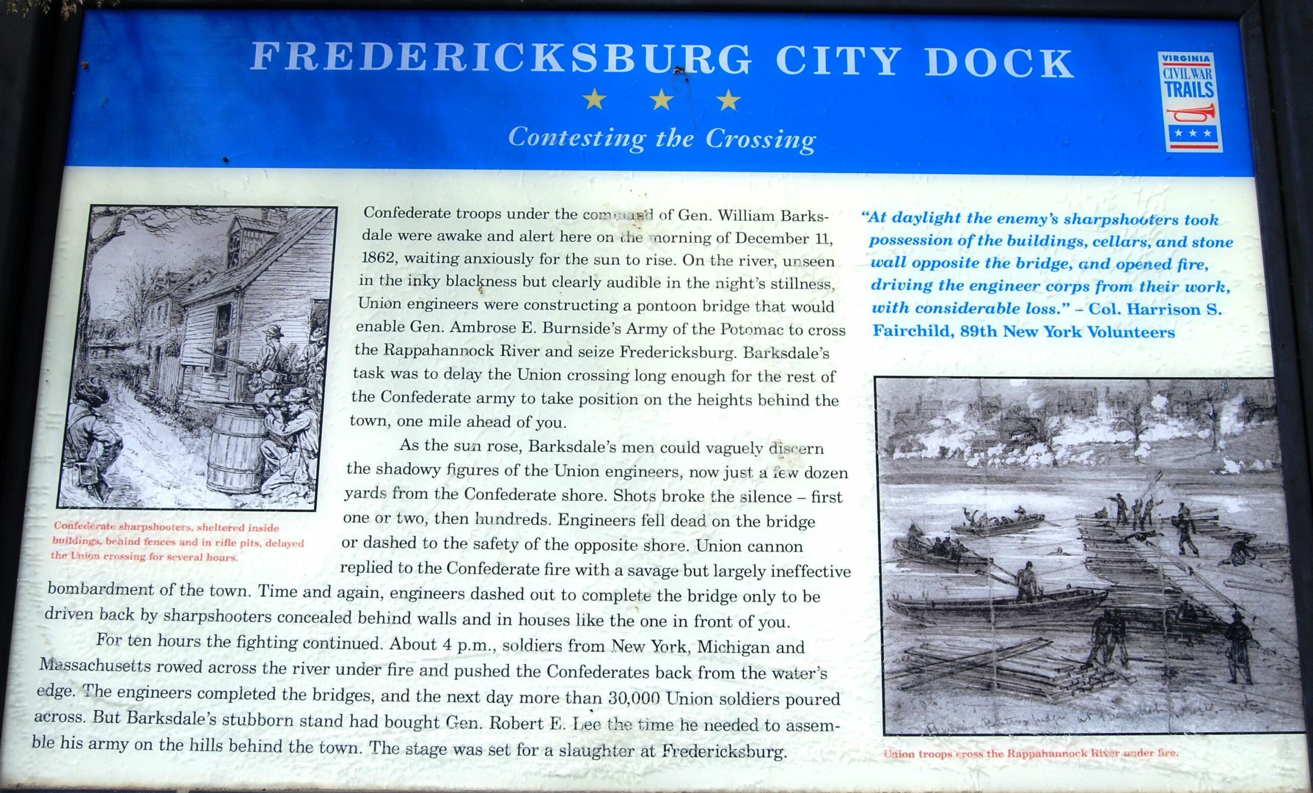 FREDERICKSBURG CITY DOCK CONTESTING THE CROSSING WAR MEMORIAL PANEL