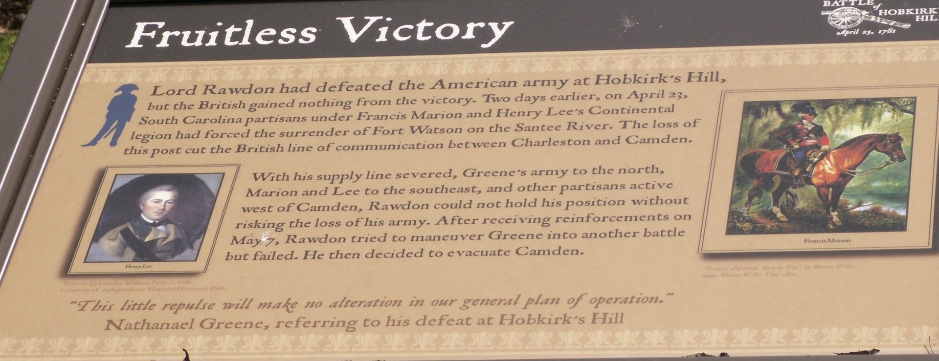 FRUITLESS VICTORY REVOLUTIONARY WAR MEMORIAL PLAQUE
