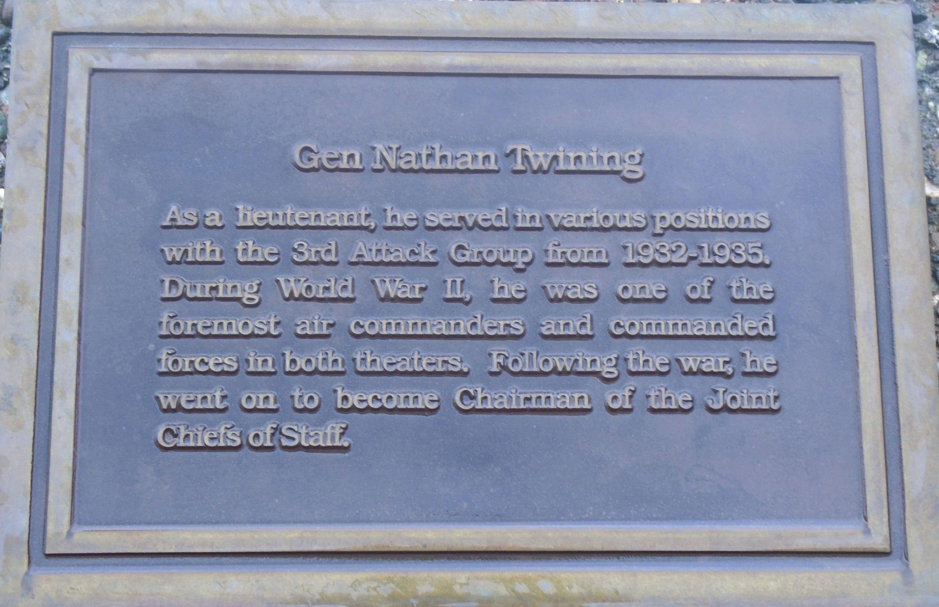 GEN NATHAN TWINING WAR MEMORIAL PLAQUE