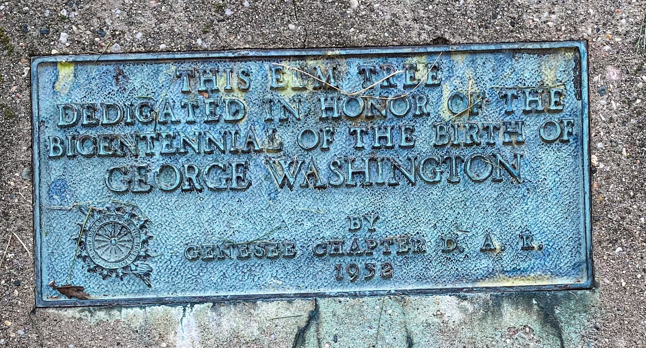 GEORGE WASHINGTON ELM TREE MEMORIAL PLAQUE