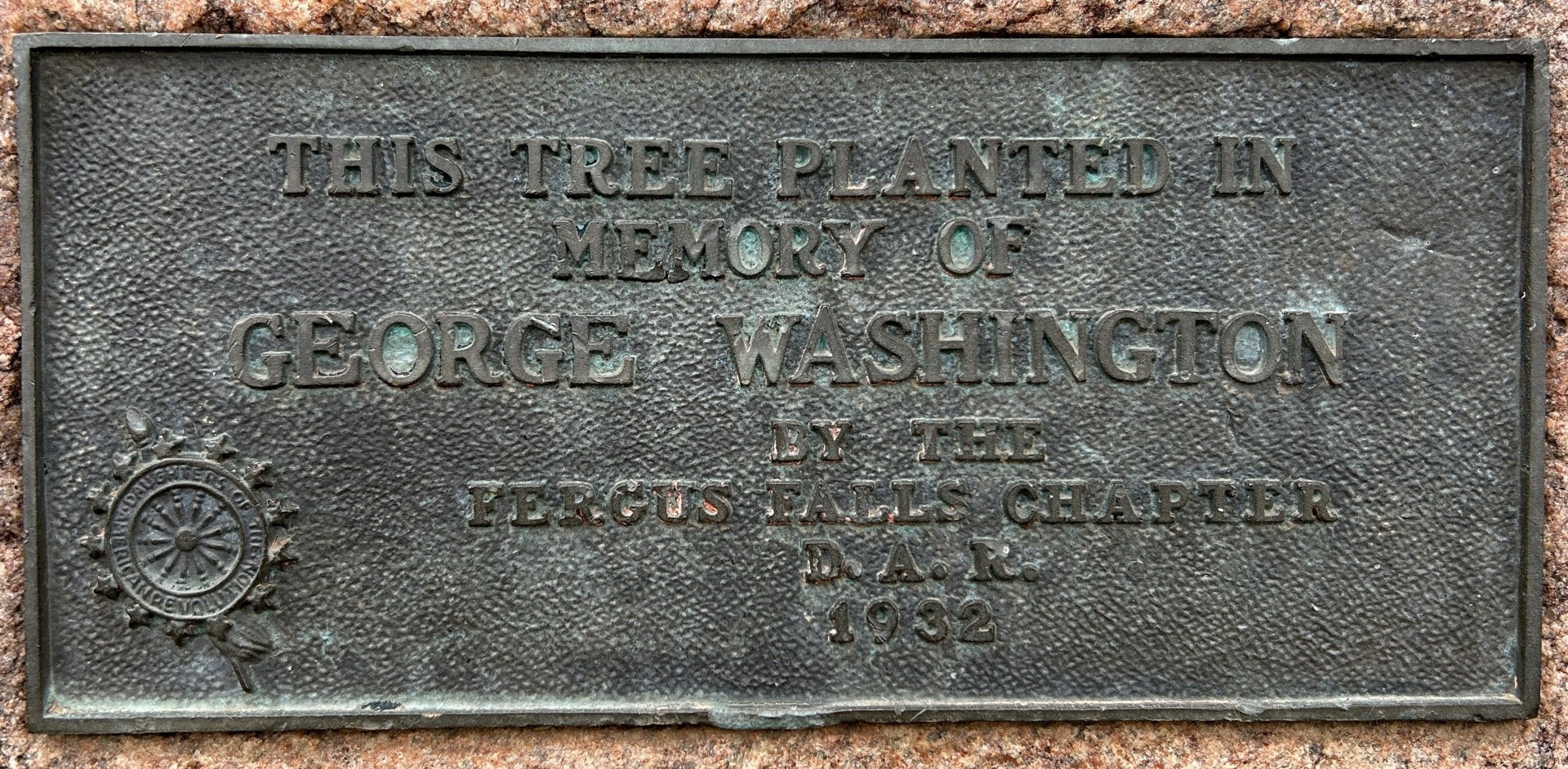 GEORGE WASHINGTON MEMORIAL TREE PLAQUE FERGUS FALLS