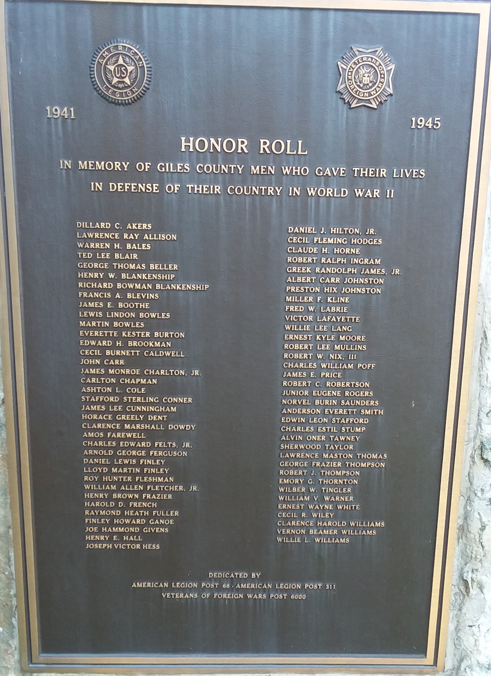GILES COUNTY WAR MEMORIAL PLAQUE B