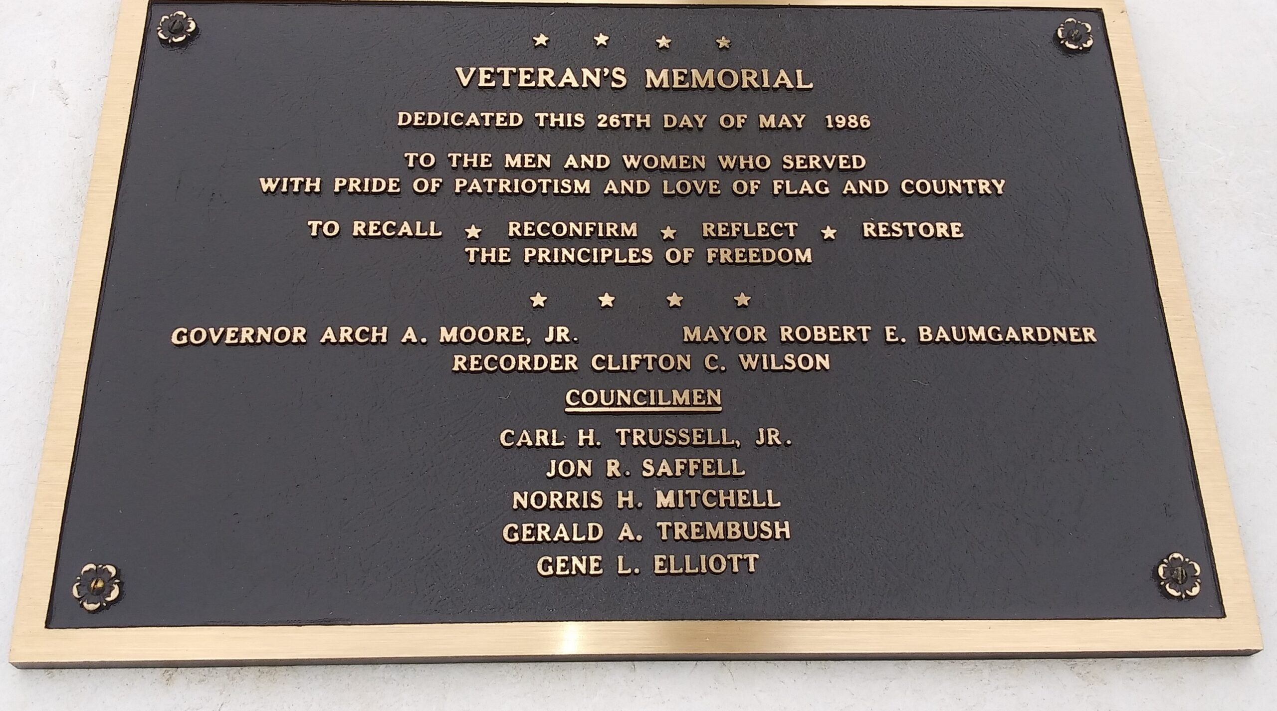 GLEN DALE VETERAN’S MEMORIAL PLAQUE A