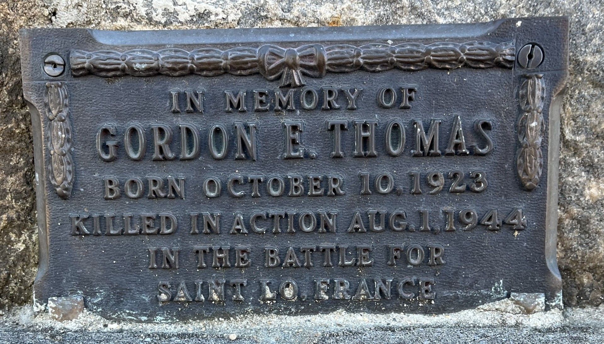 GORDON E. THOMAS WAR MEMORIAL PLAQUE