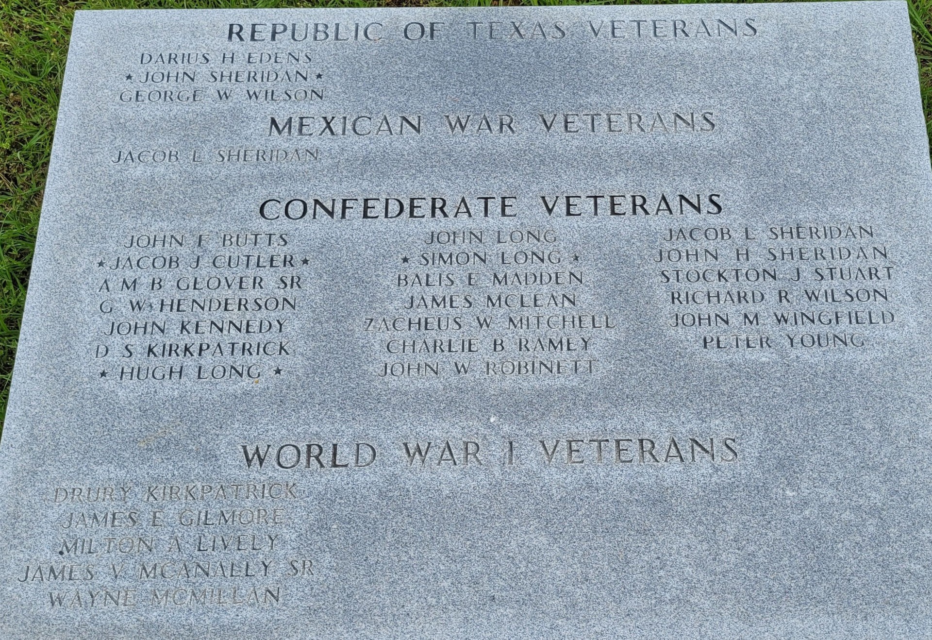 GRAPELAND WAR VETERANS MEMORIAL HONOR ROLL STONE A