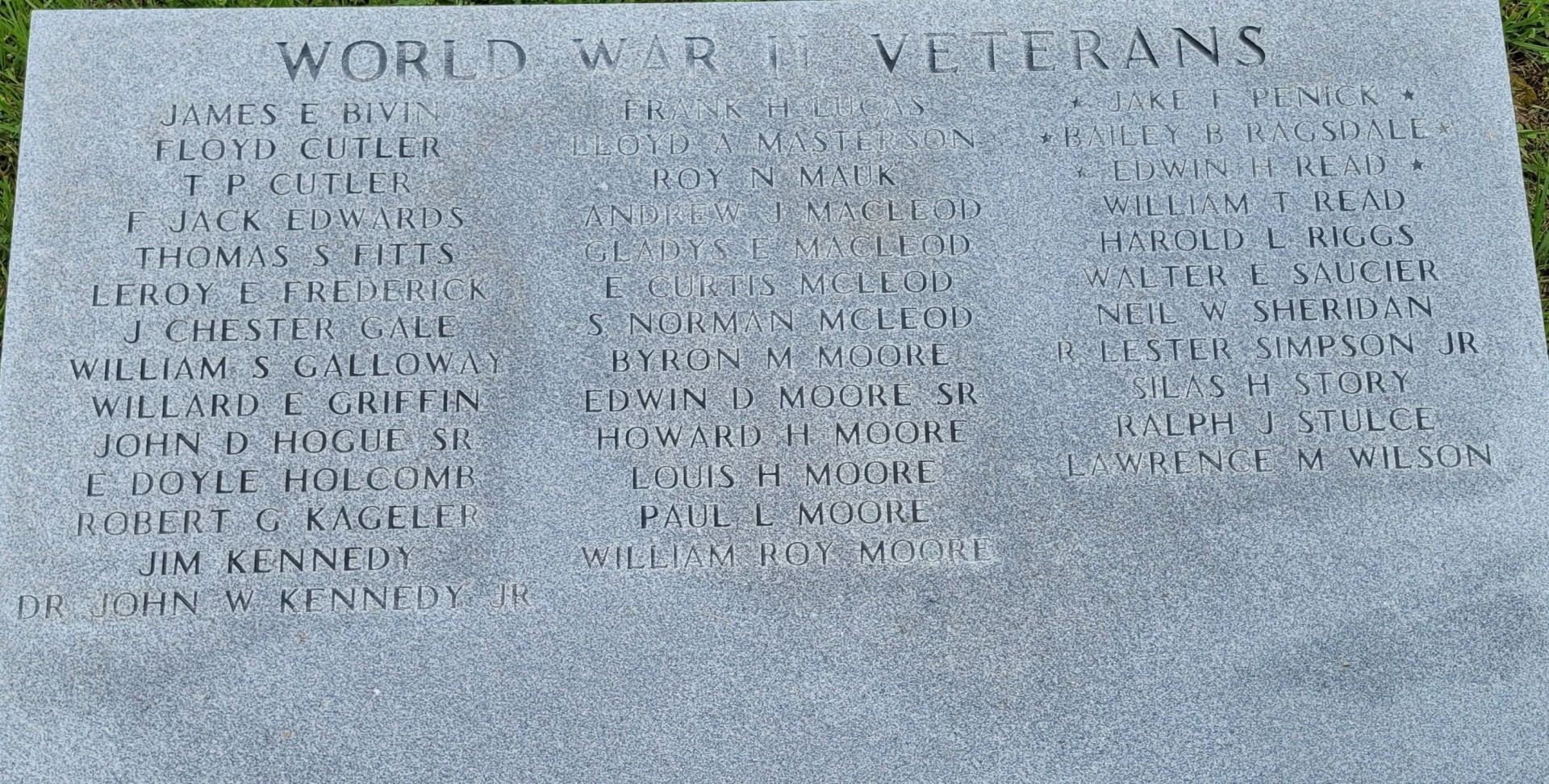 GRAPELAND WAR VETERANS MEMORIAL HONOR ROLL STONE B