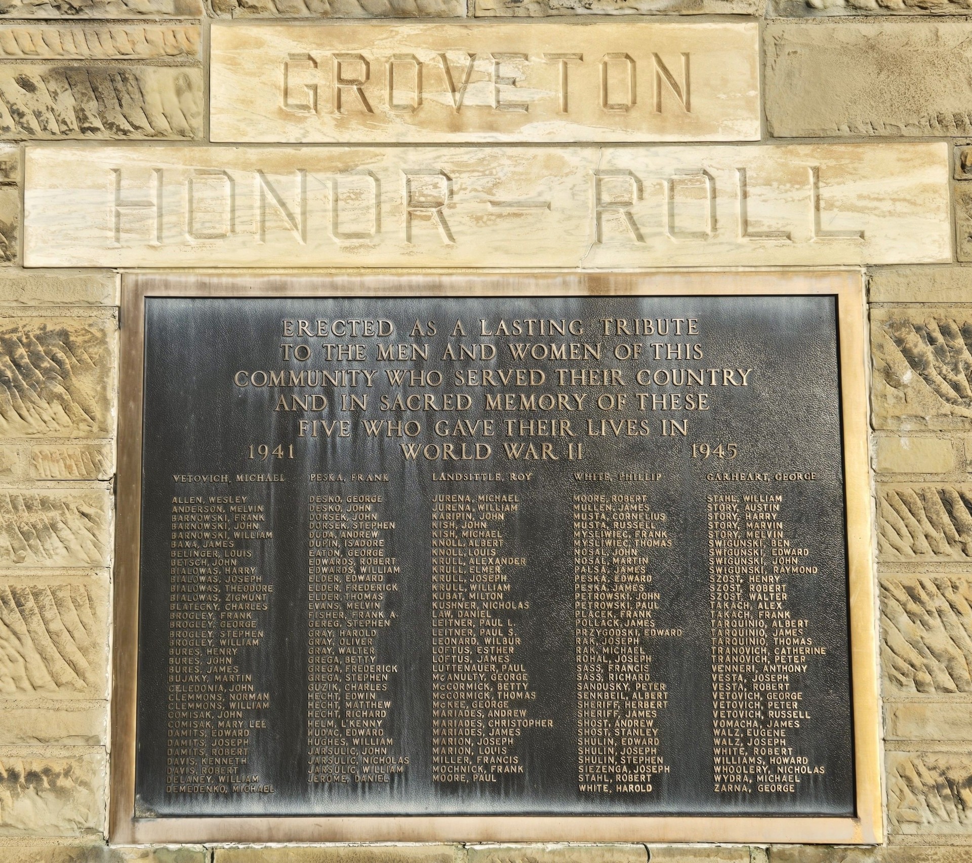 GROVETON HONOR ROLL MEMORIAL CLOSE-UP