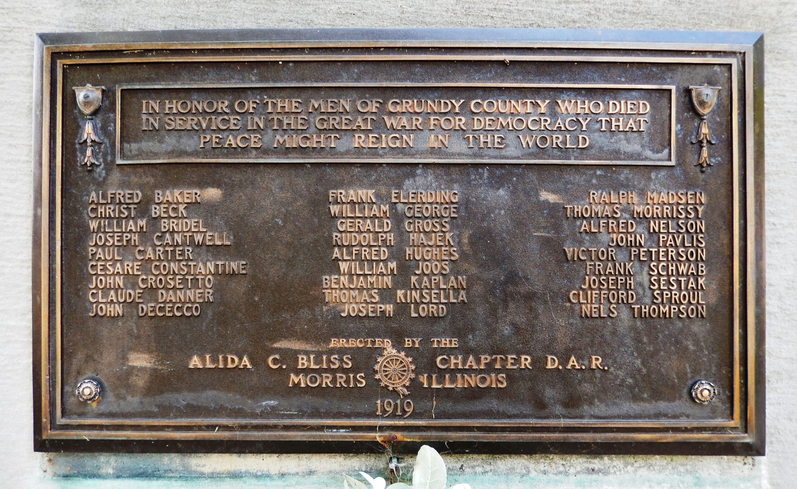 GRUNDY COUNTY GREAT WAR SUPREME SACRIFICE MEMORIAL PLAQUE