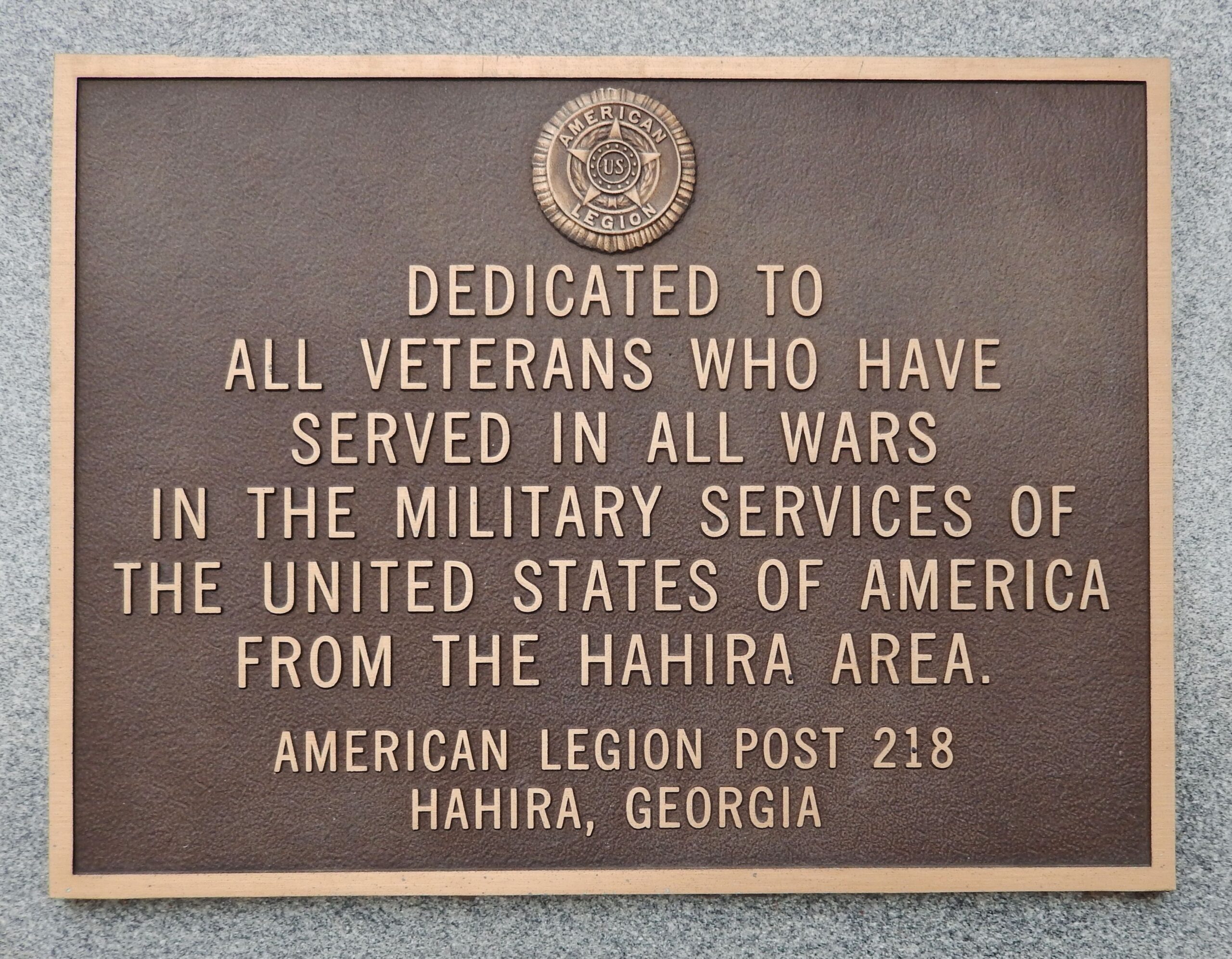 HAHIRA AREA ALL WARS VETERANS MEMORIAL PLAQUE