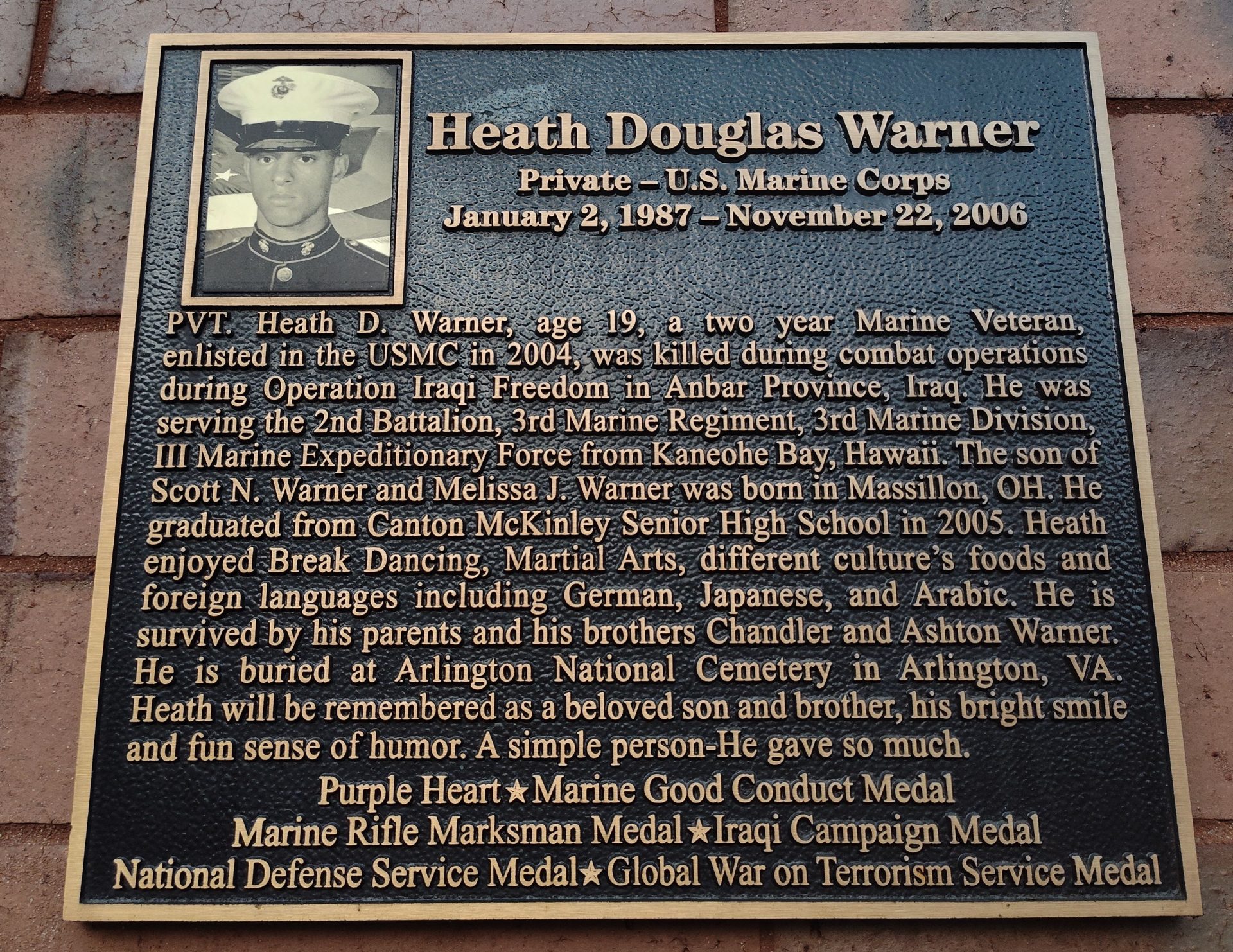 HEATH DOUGLAS WARNER WAR MEMORIAL PLAQUE