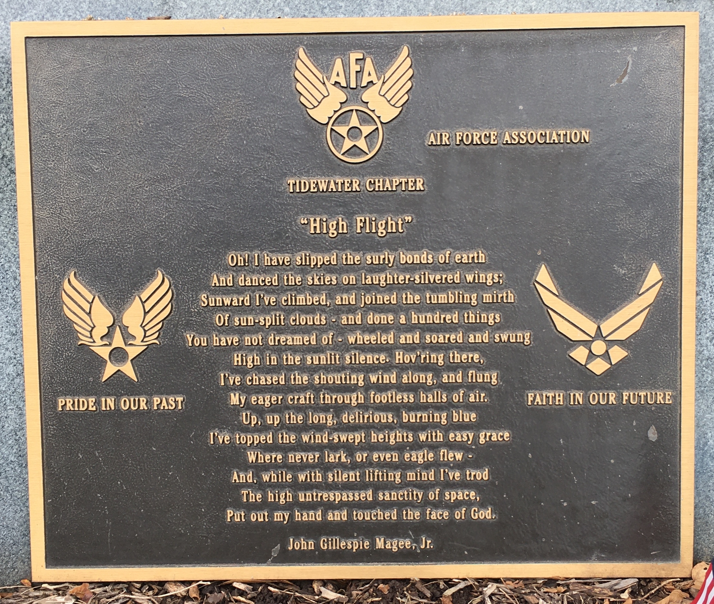 “HIGH FLIGHT” TIDEWATER CHAPTER MEMORIAL PLAQUE