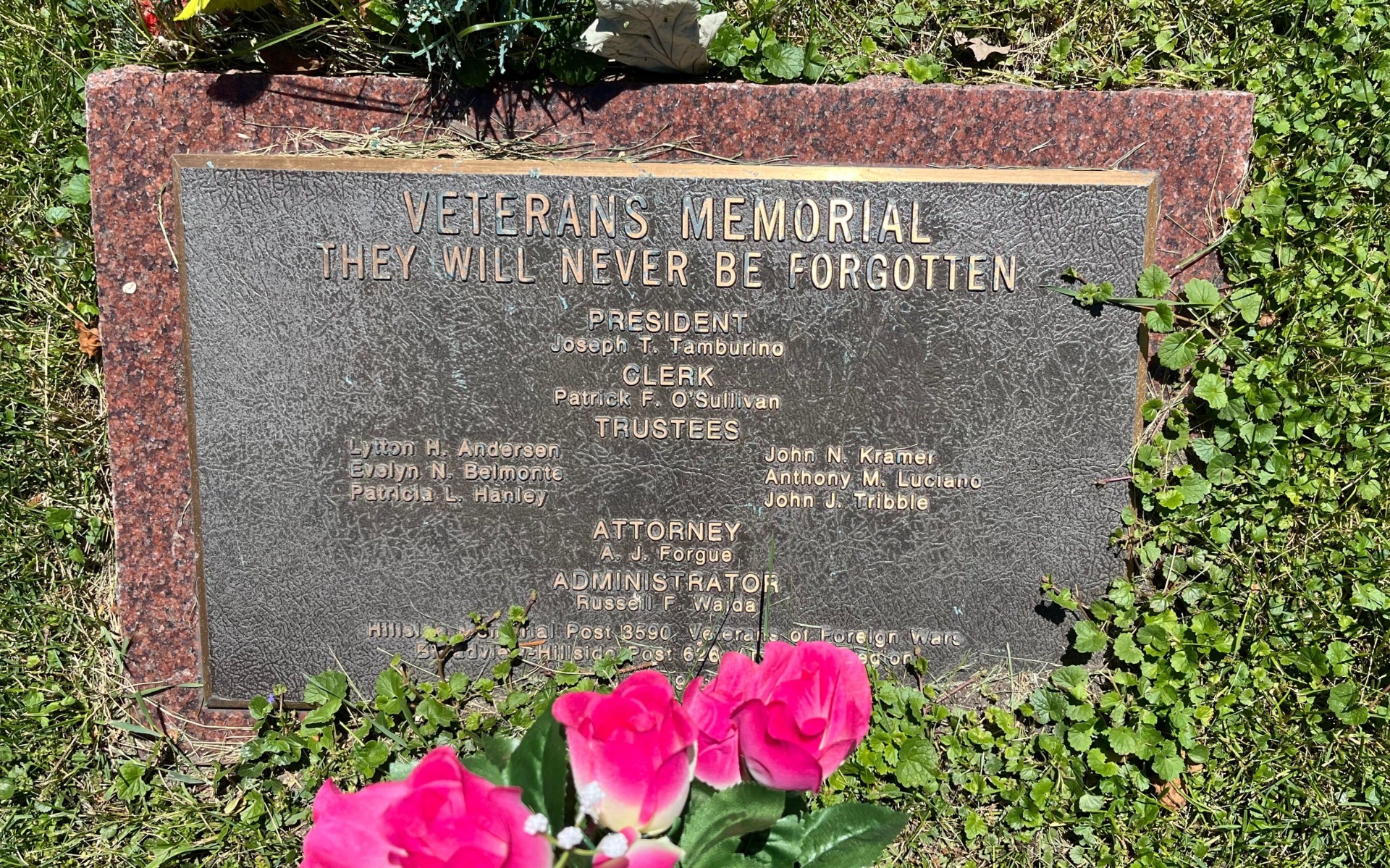 HILLSIDE VETERANS MEMORIAL FLAGPOLE PLAQUE
