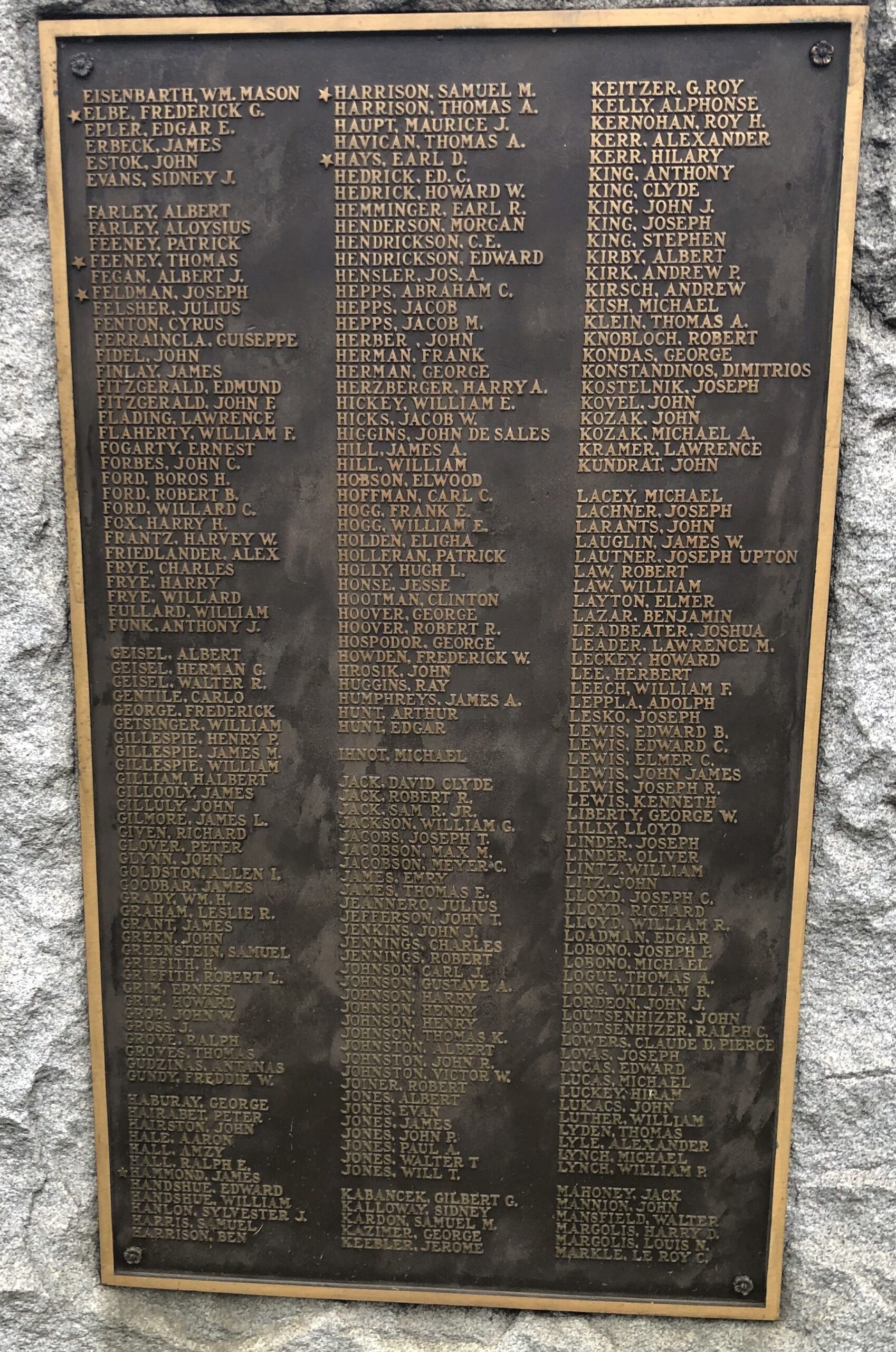 HOMESTEAD DISTRICT WORLD WAR MEMORIAL PLAQUE B