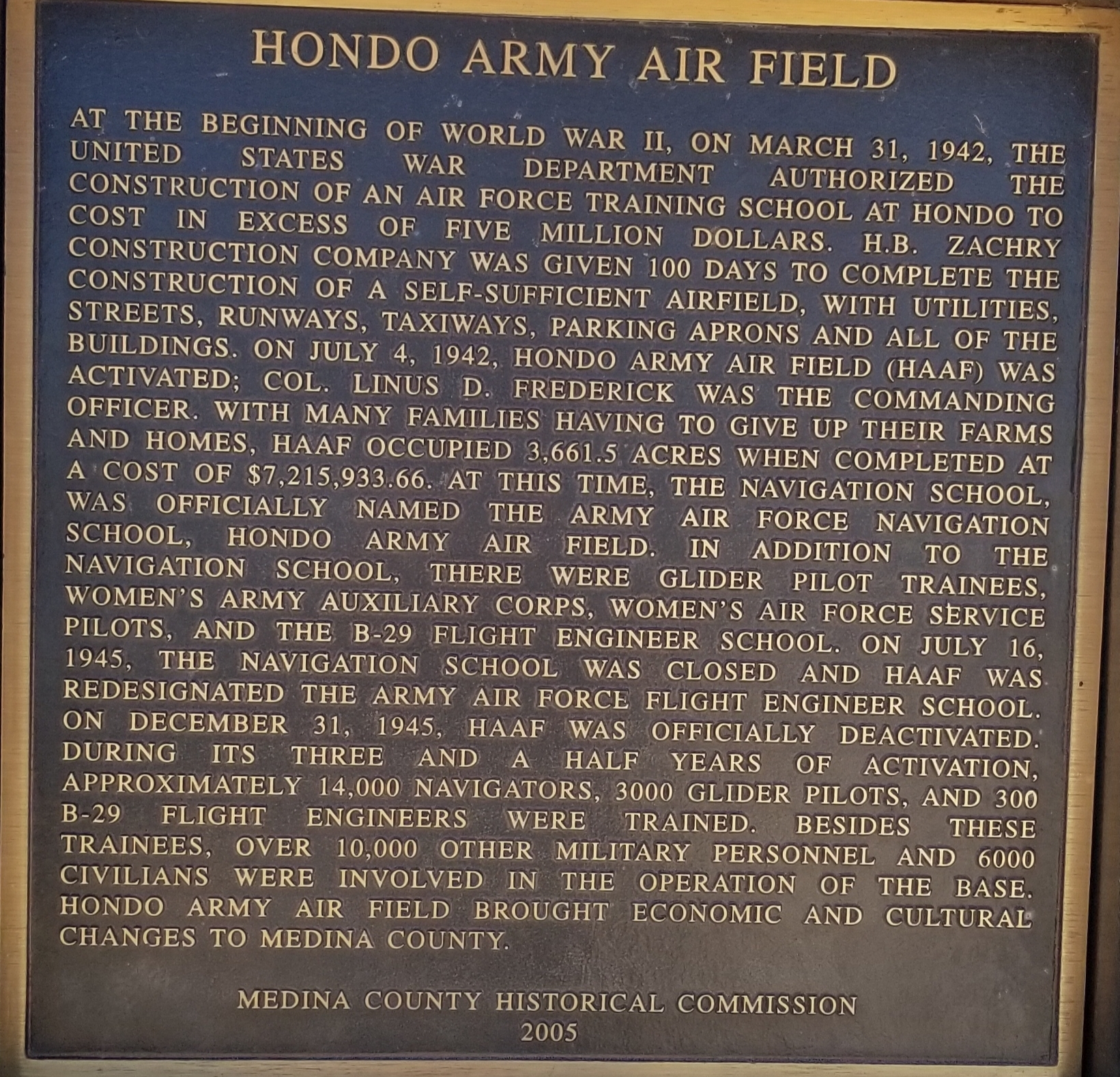 HONDO ARMY AIR FIELD WAR MEMORIAL PLAQUE