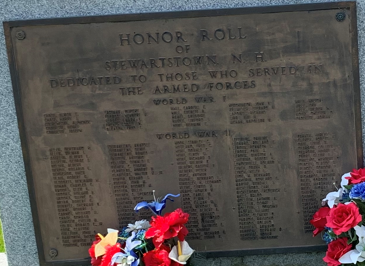SEE ALSO-HONOR ROLL OF STEWARTSTOWN, NH MEMORIAL FRONT