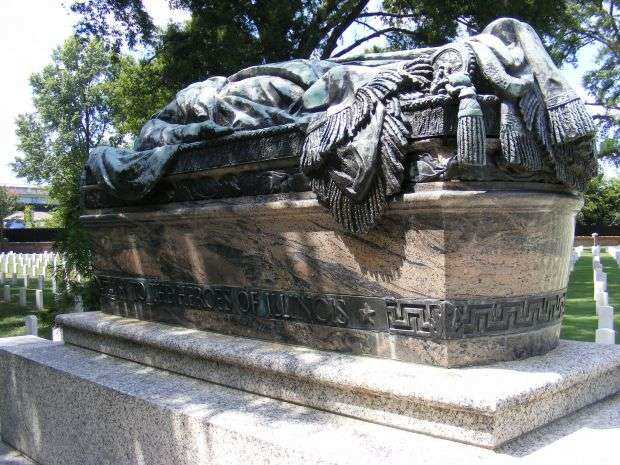 WHEN PRESIDENT ABRAHAM LINCOLN CALLED FOR VOLUNTEERS TO DEFEND THE LIFE OF OUR IMPERILED NATION, THESE VALIANT SONS OF ILLINOIS TOGETHER WITH OTHER HEROES, OFFERED THEIR LIVES WITH PATRIOTISM UNSURPASSED. WITH UNFLINCHING BRAVERY THEY FOUGHT THE BLOODY BATTLES OF THE GREAT CIVIL WAR FOR UNION AND LIBERTY. UPON THEM THEREFORE, A GRATEFUL STATE BESTOWS THE CROWN OF UNDYING AFFECTION AND THE LAUREL OF VICTORY.