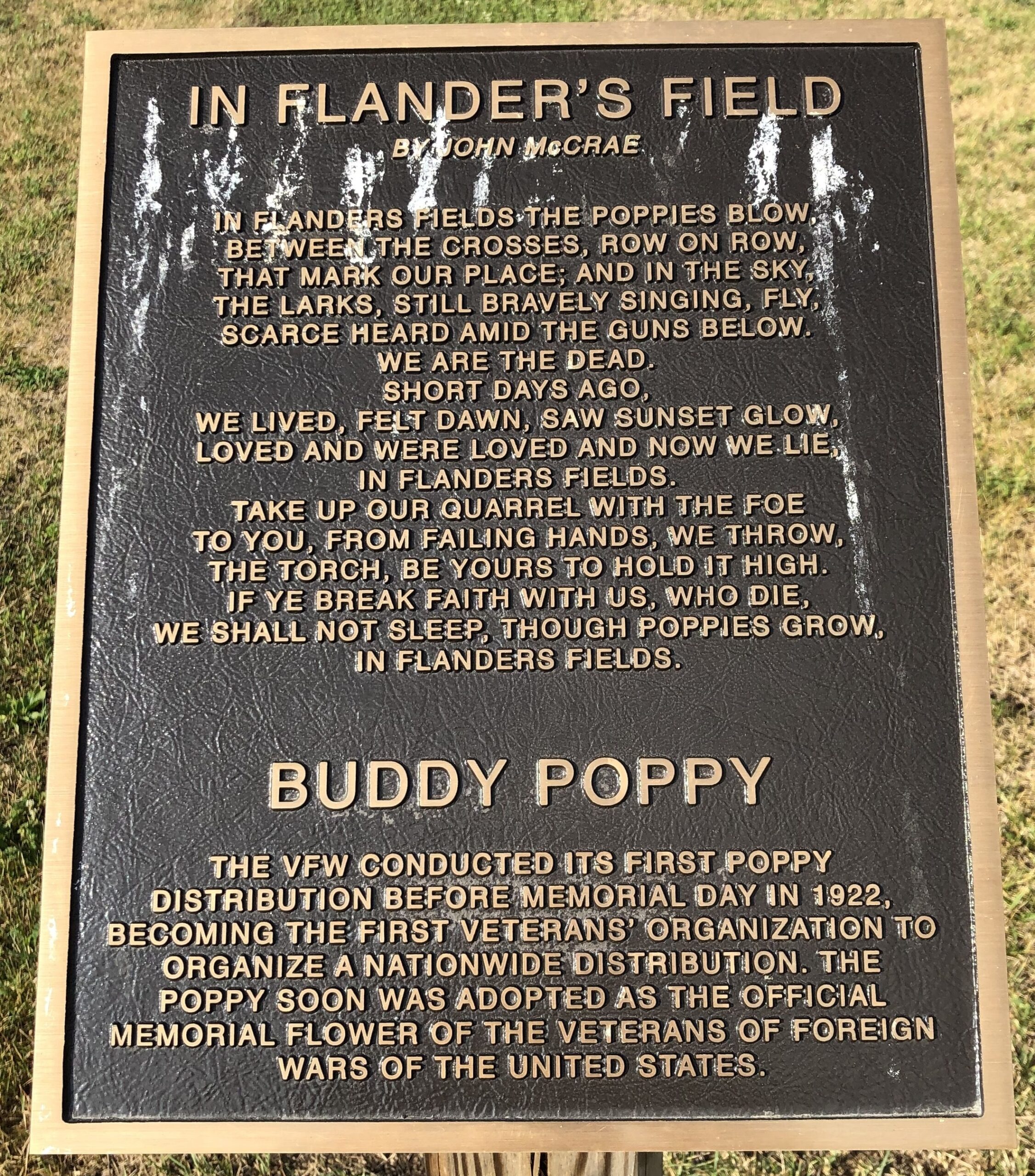 IN FLANDER’S FIELD WAR MEMORIAL PLAQUE