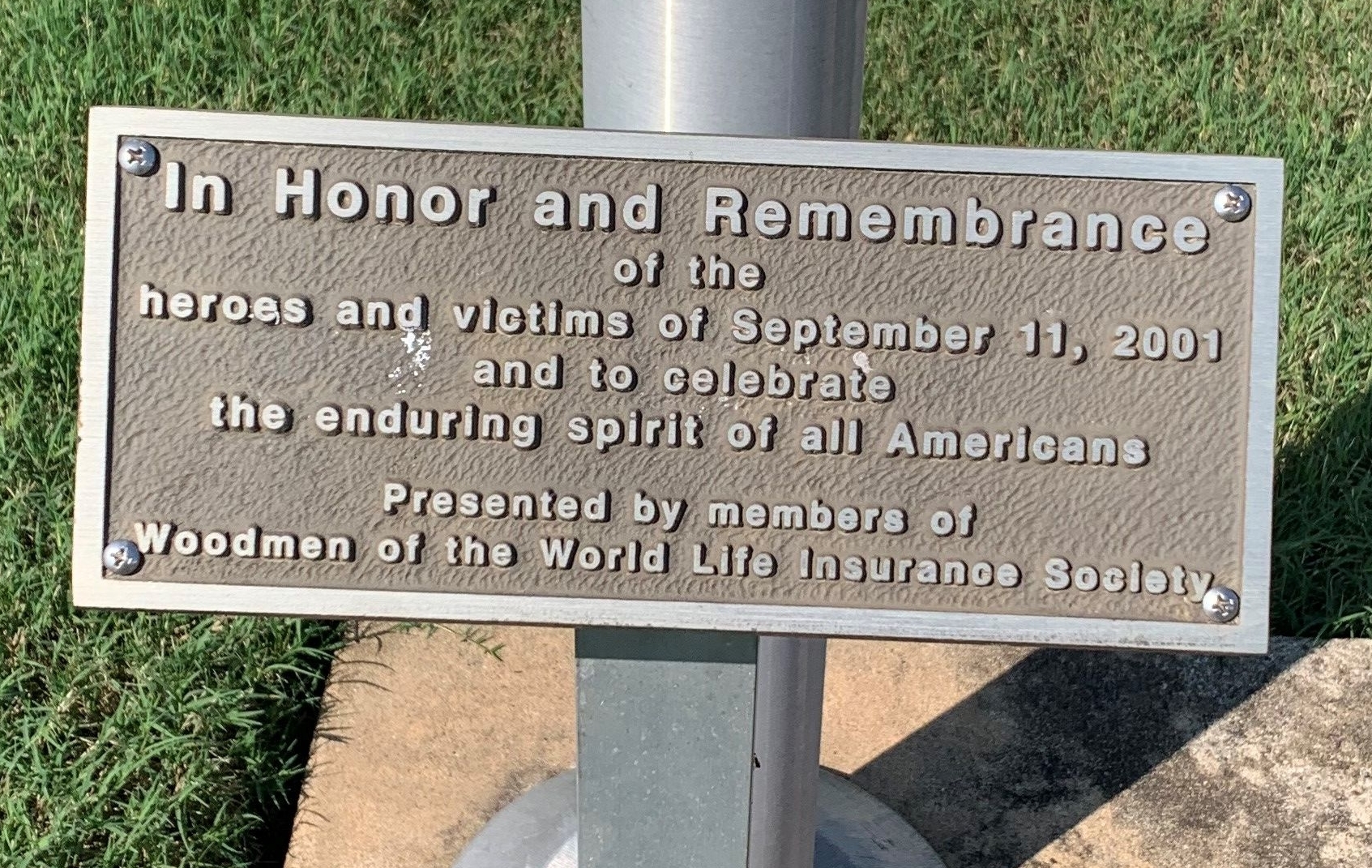 IN HONOR AND REMEMBRANCE SEPTEMBER 11, 2001 MEMORIAL FLAGPOLE PLAQUE