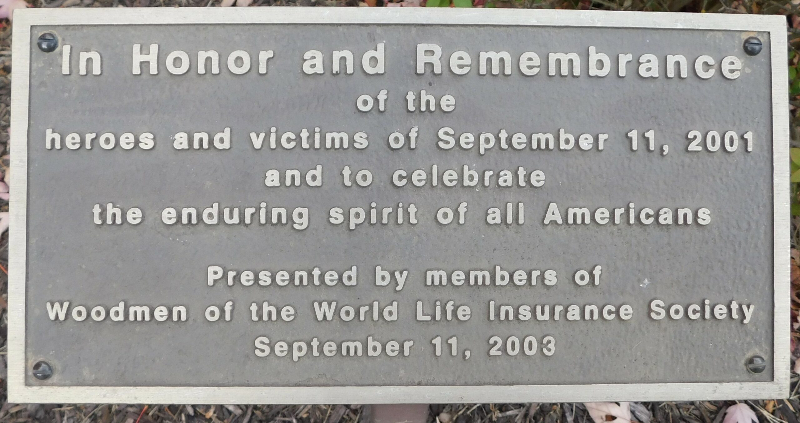 IN HONOR AND REMEMBRANCE SEPTEMBER 11, 2001 MEMORIAL PLAQUE BRIDGEWATER