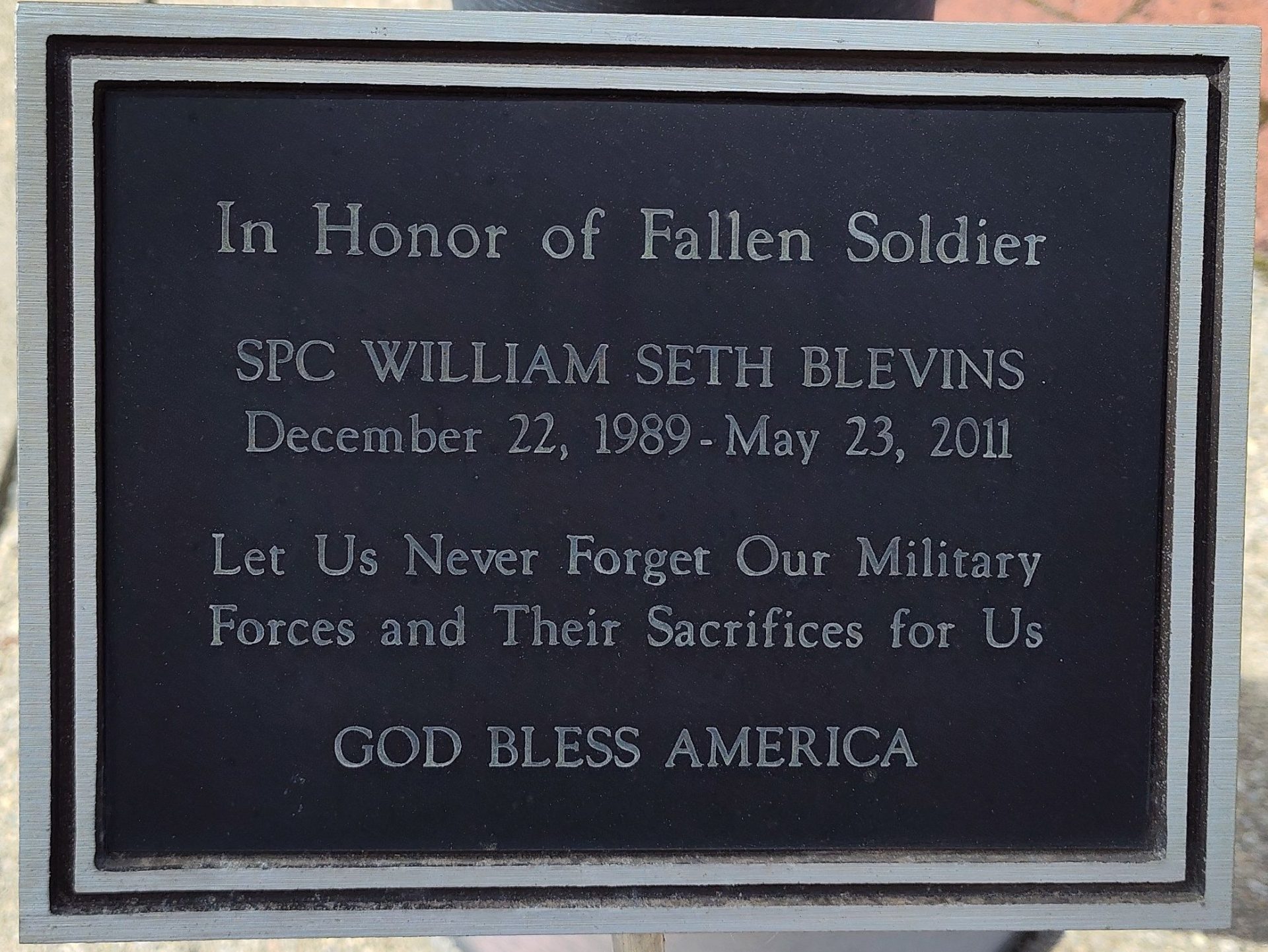 IN HONOR OF FALLEN SOLDIER WAR MEMORIAL PLAQUE