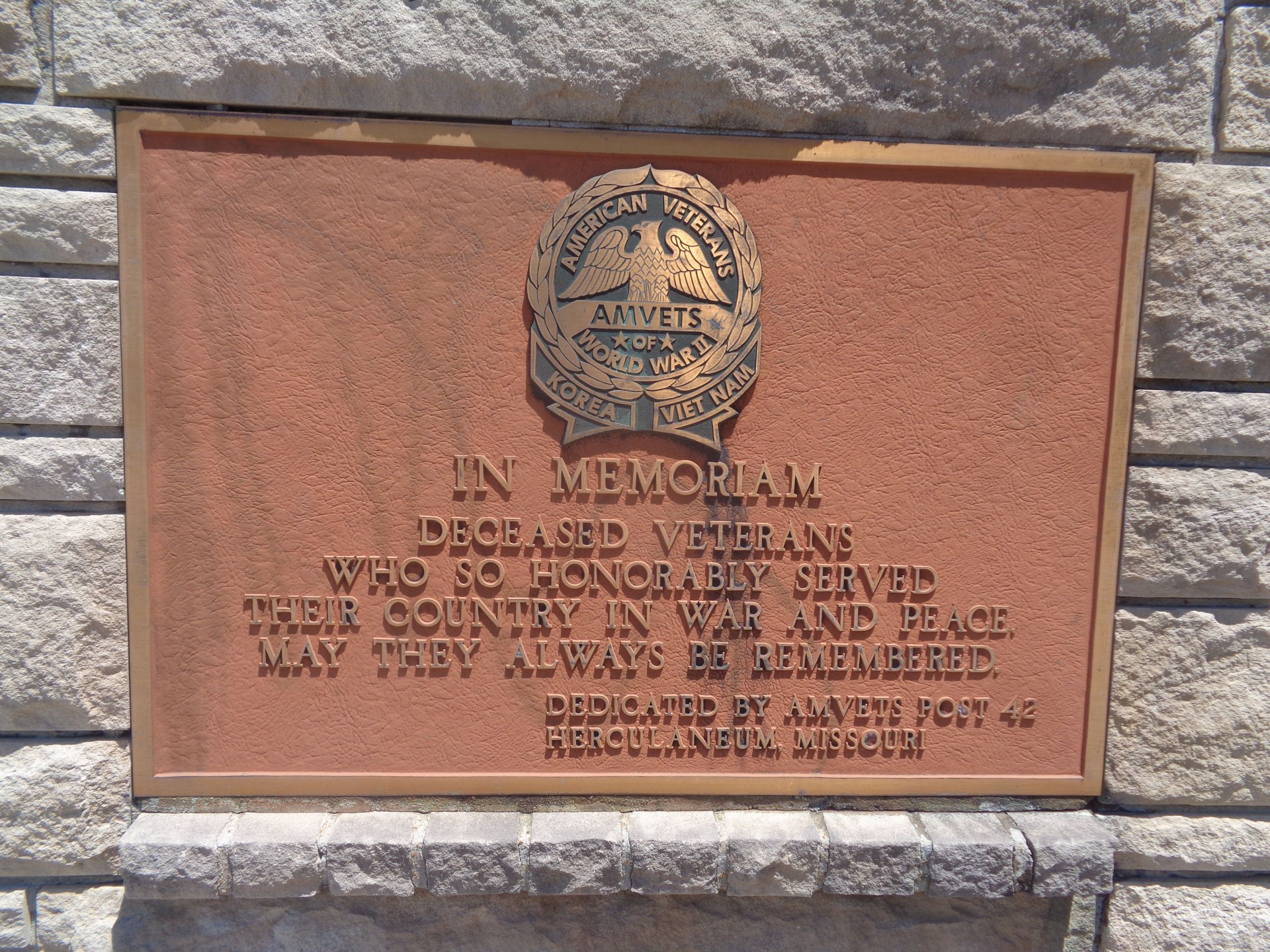 IN MEMORIAM DECEASED VETERANS IN WAR AND PEACE MEMORIAL PLAQUE