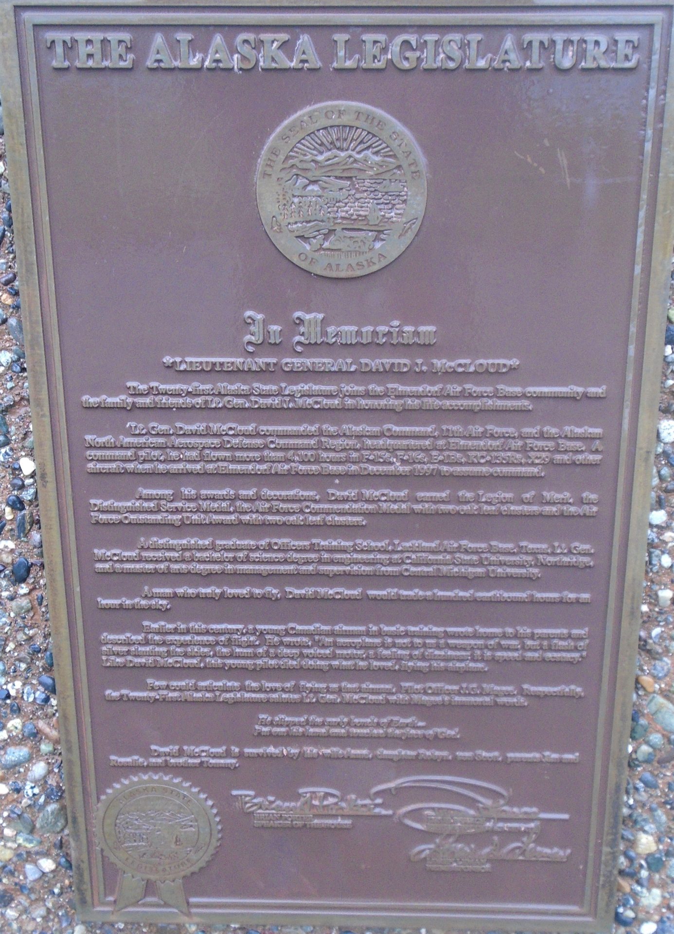 IN MEMORIAM LIEUTENANT GENERAL DAVID J. MCCLOUD MEMORIAL PLAQUE