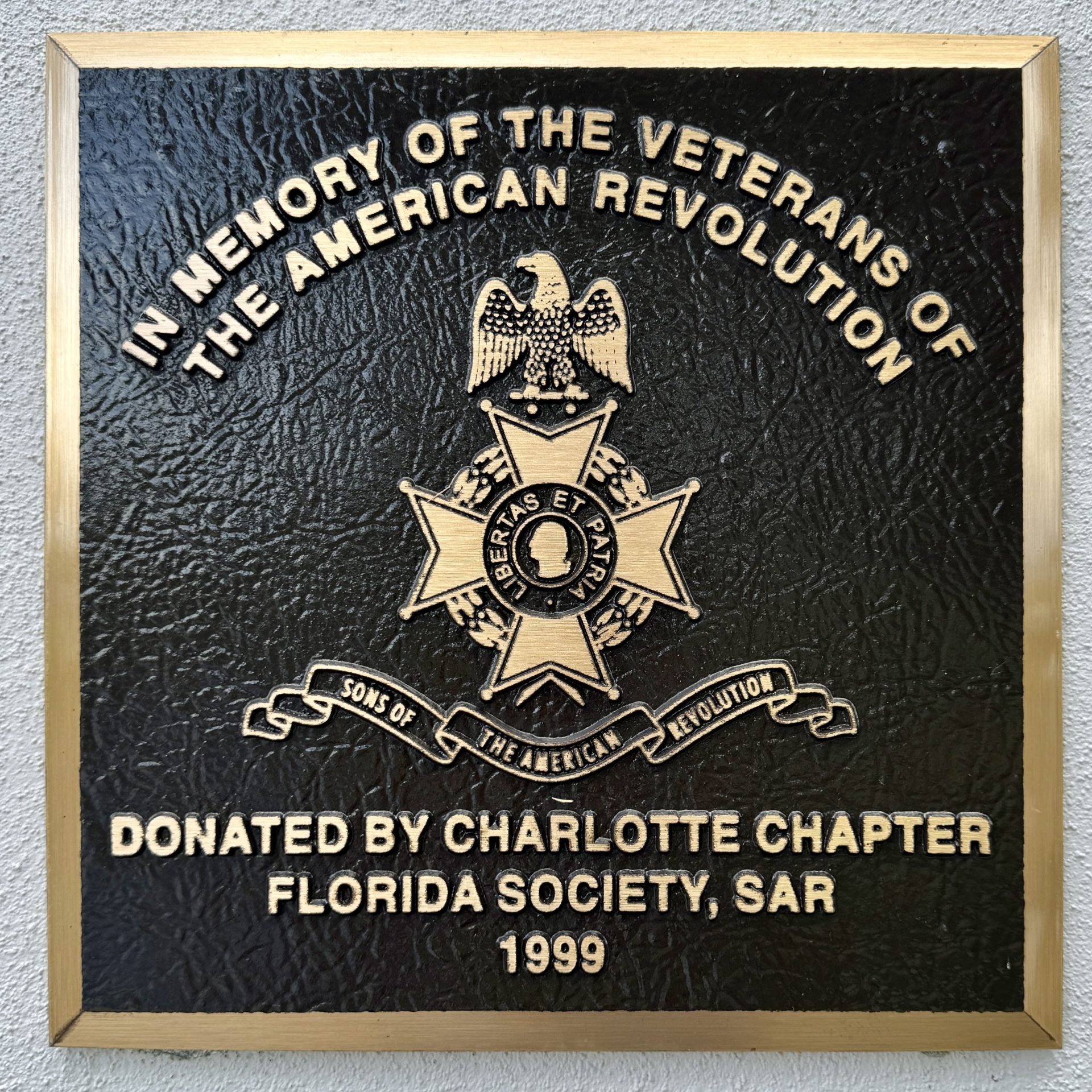 IN MEMORY OF THE VETERANS OF THE AMERICAN REVOLUTION MEMORIAL PLAQUE