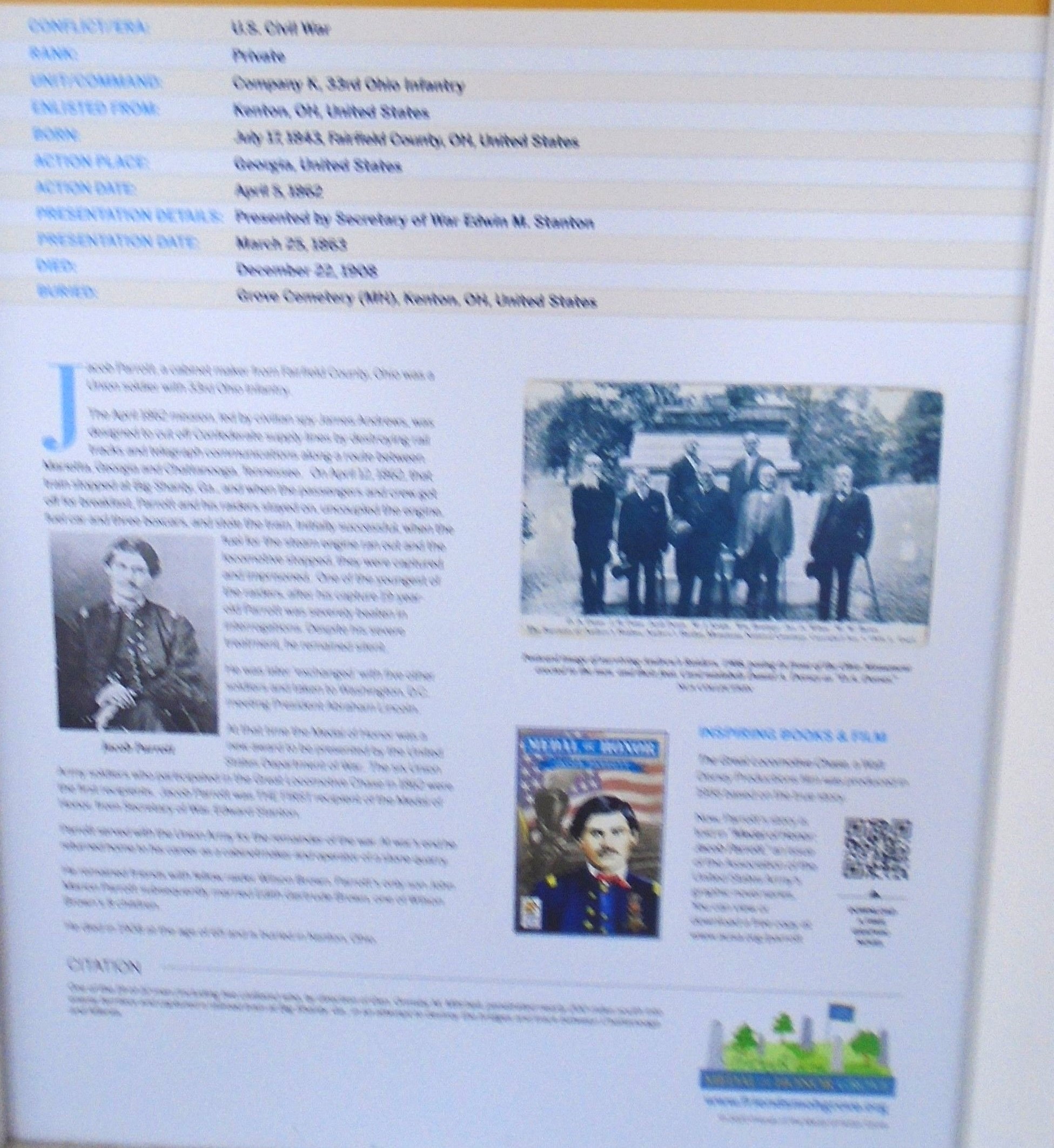 SEE ALSO-JACOB PARROTT MEDAL OF HONOR WAR MEMORIAL PLAQUE