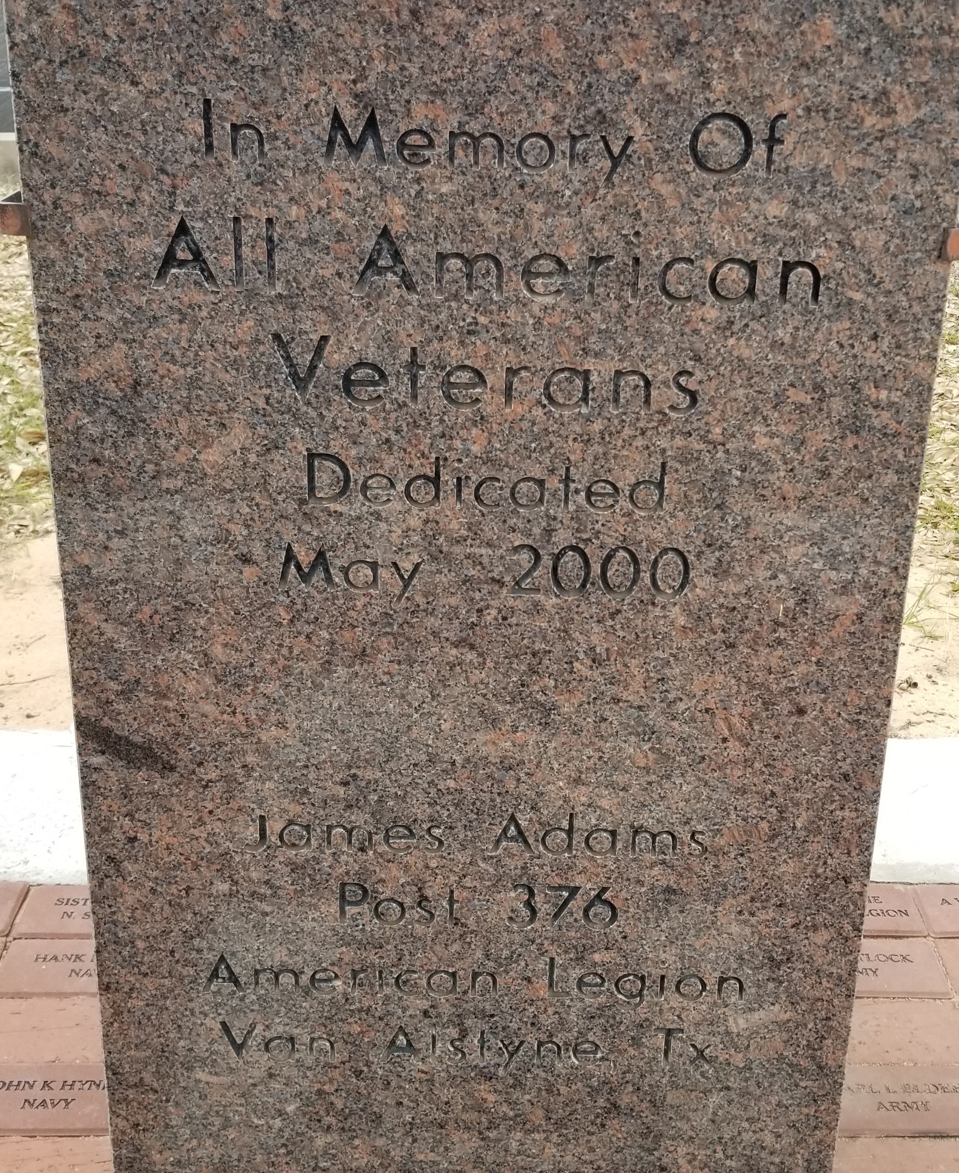 JAMES ADAMS POST 376 ALL VETERANS MEMORIAL DEDICATION STONE