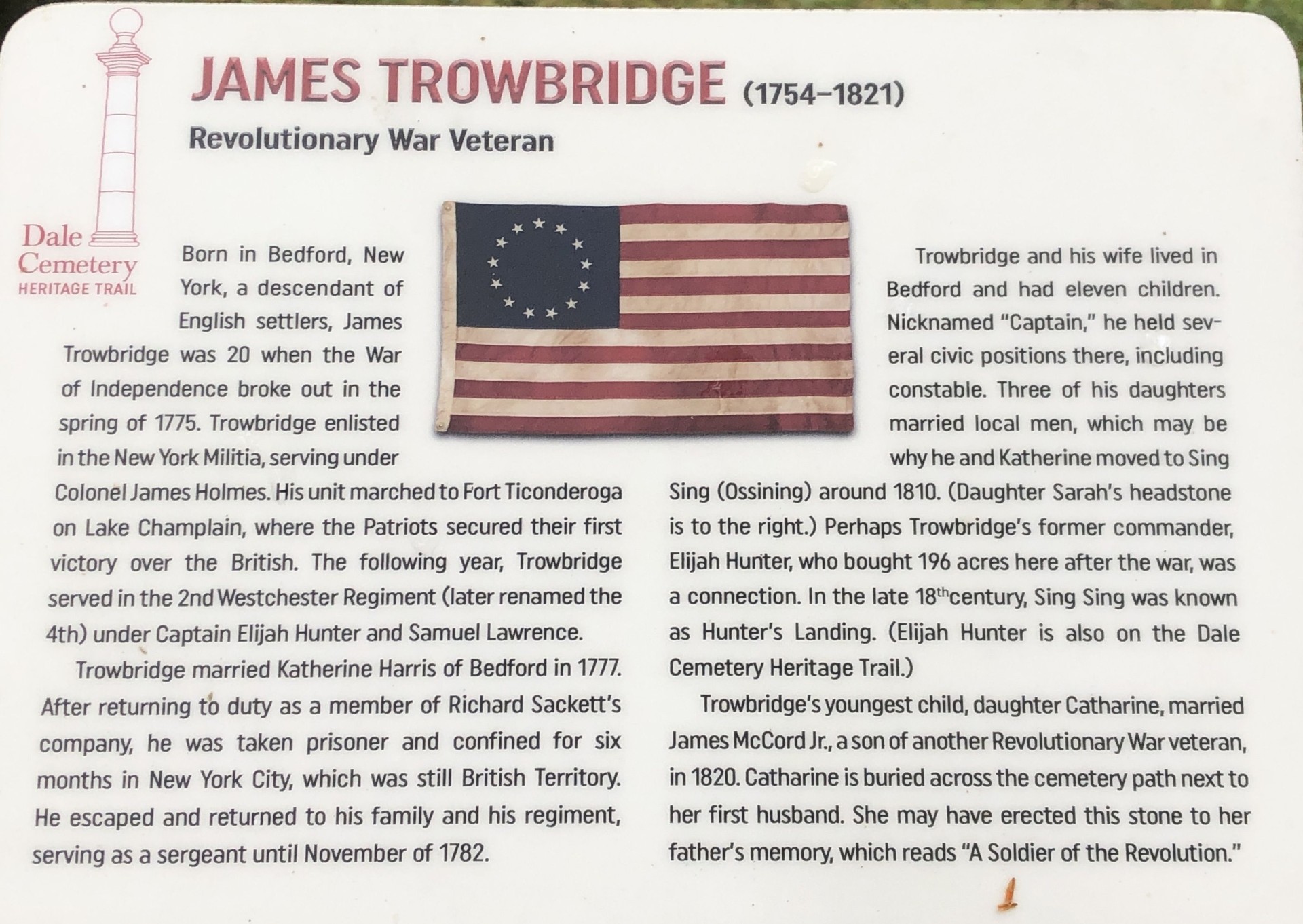 JAMES TROWBRIDGE REVOLUTIONARY WAR MEMORIAL PLAQUE