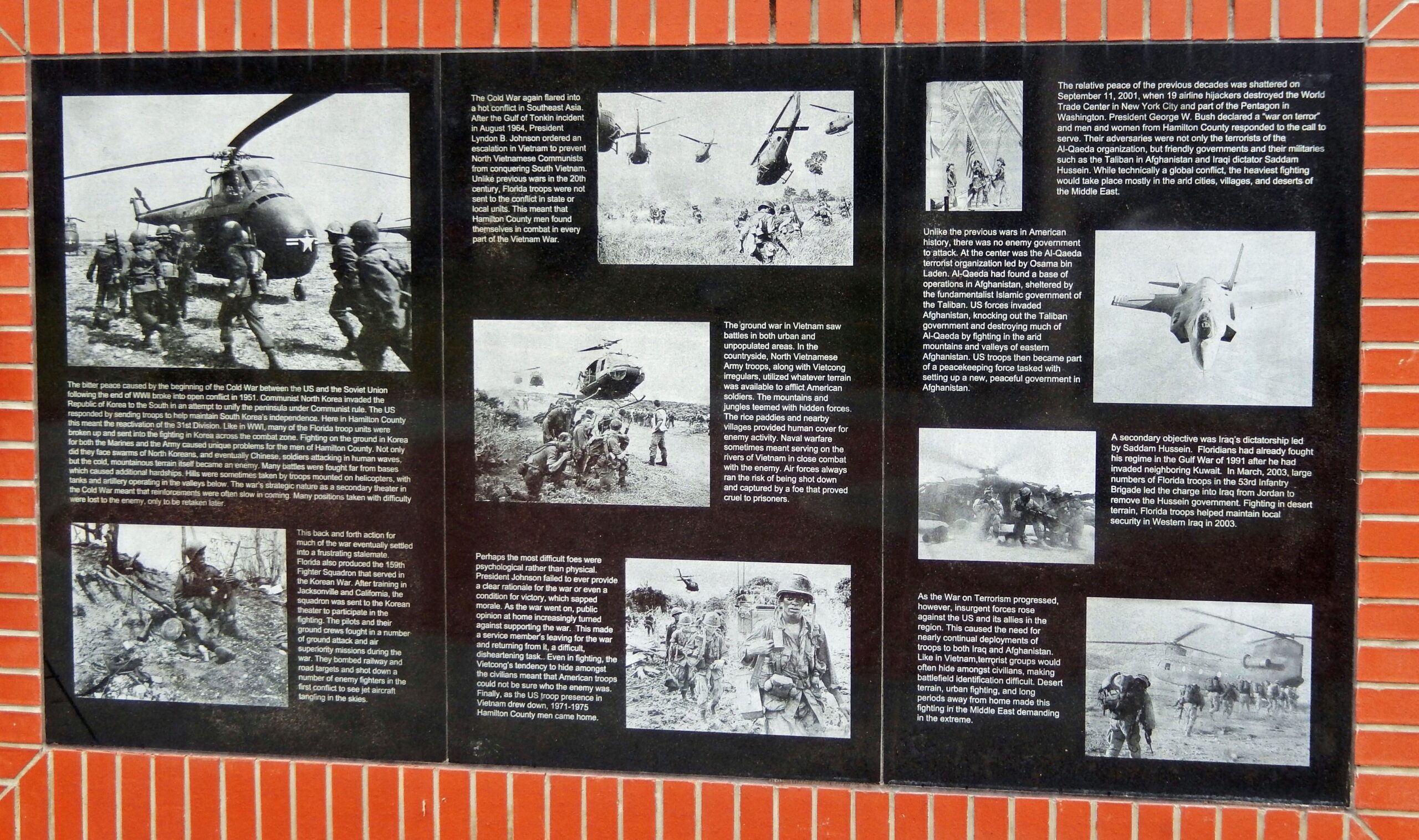 Wars Commemorated: COLD WAR, VIETNAM WAR, ATTACK ON AMERICA, IRAQ WAR, AFGHANISTAN WAR AND WAR ON TERRORISM