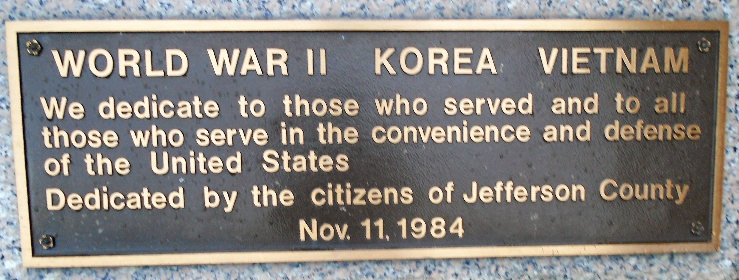 JEFFERSON COUNTY WAR VETERANS MEMORIAL CANNON PLAQUE