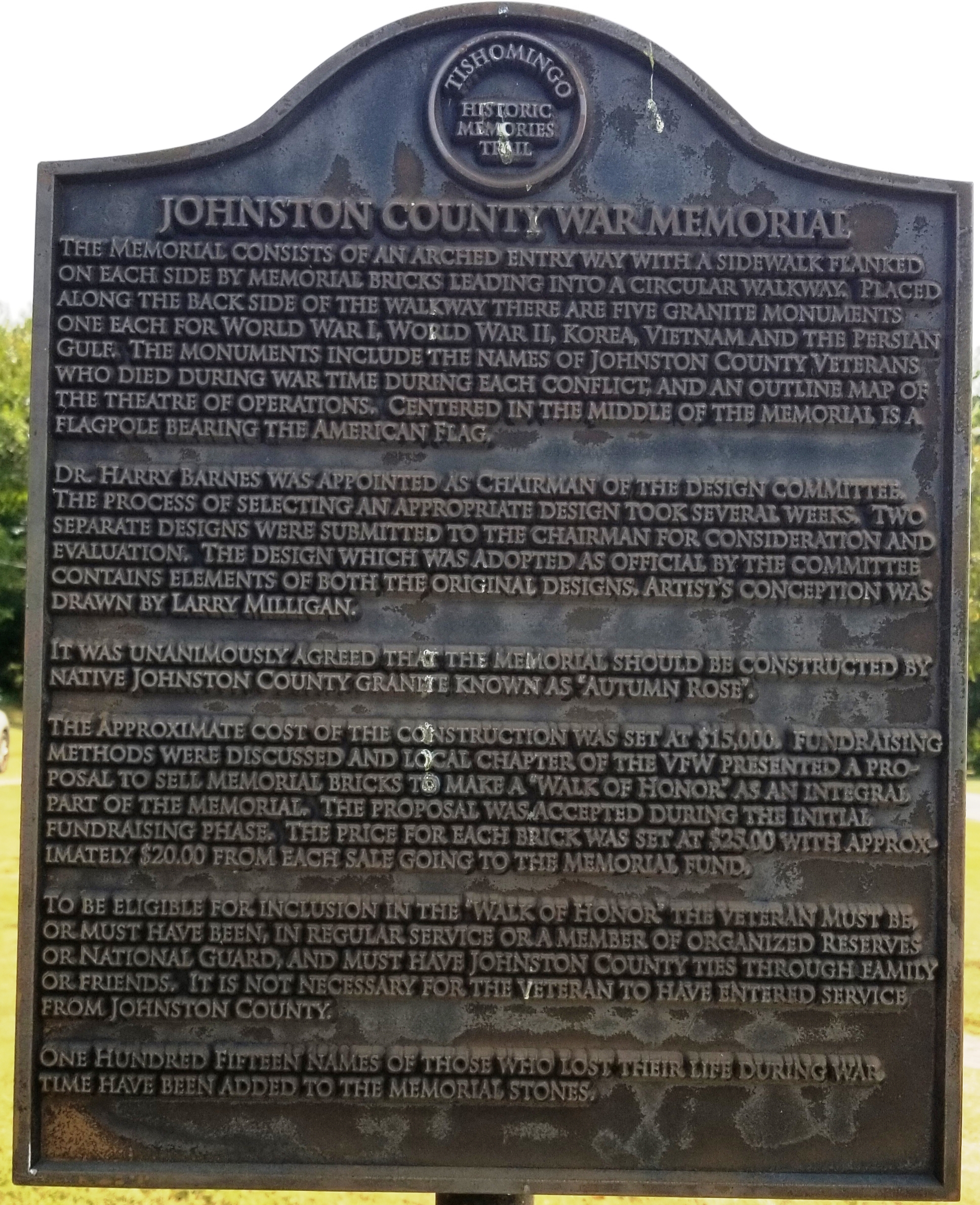JOHNSTON COUNTY WAR MEMORIAL MARKER