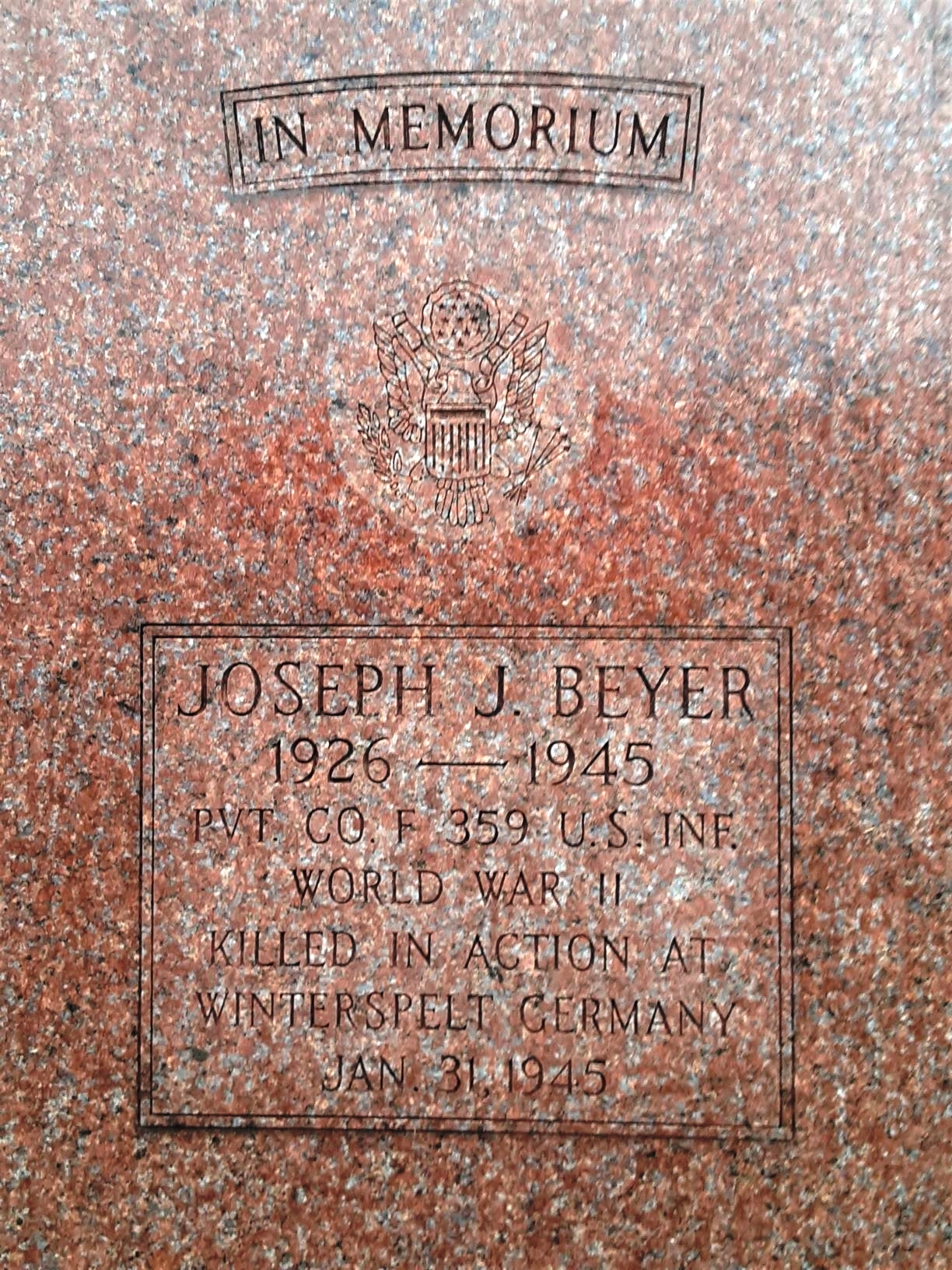 SEE ALSO-JOSEPH J. BEYER WAR MEMORIAL CEMETERY STONE