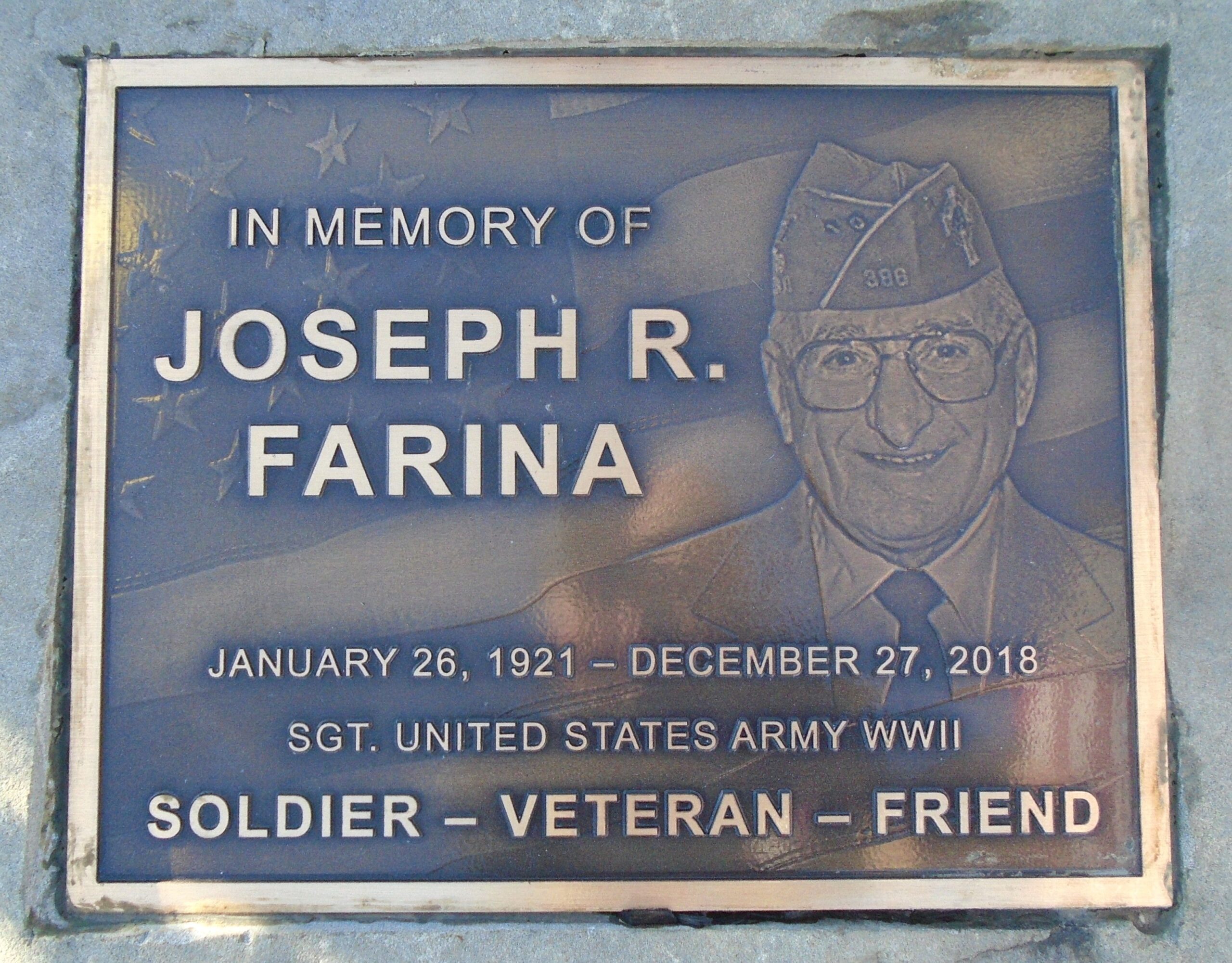 JOSEPH R. FARINA WAR MEMORIAL PLAQUE