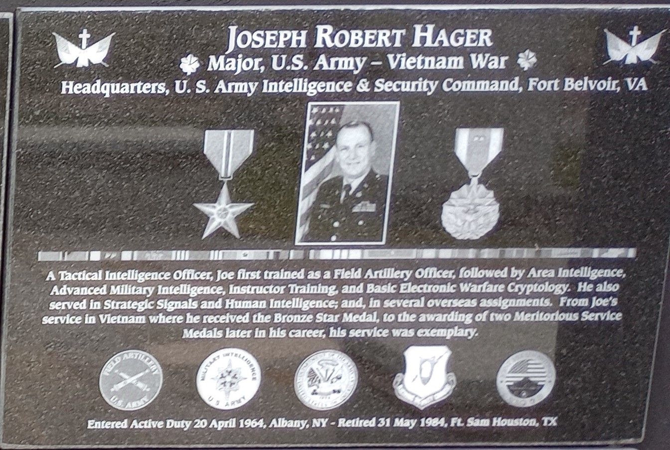 JOSEPH ROBERT HAGER WAR MEMORIAL PLAQUE