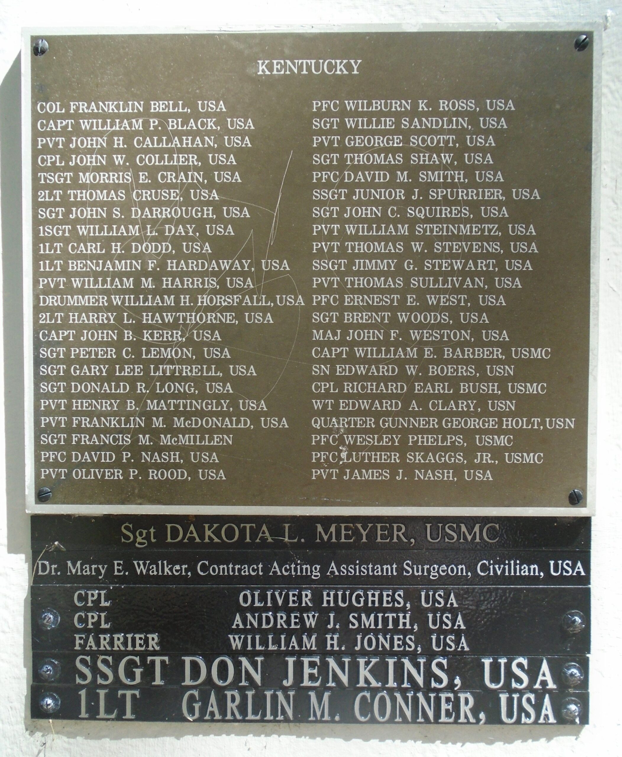KENTUCKY MEDAL OF HONOR RECIPIENTS WAR MEMORIAL PLAQUE