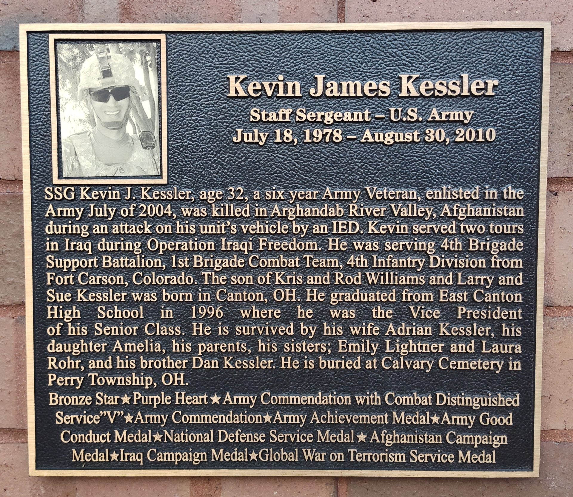KEVIN JAMES KESSLER WAR MEMORIAL PLAQUE