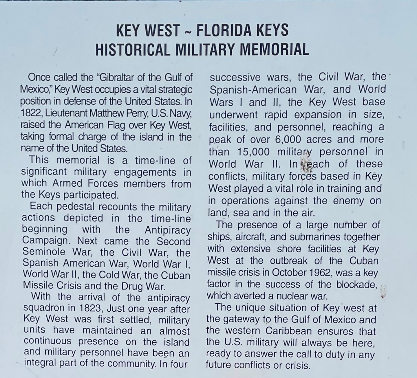 KEY WEST-FLORIDA KEYS HISTORICALMILITARY MEMORIAL PLAQUE