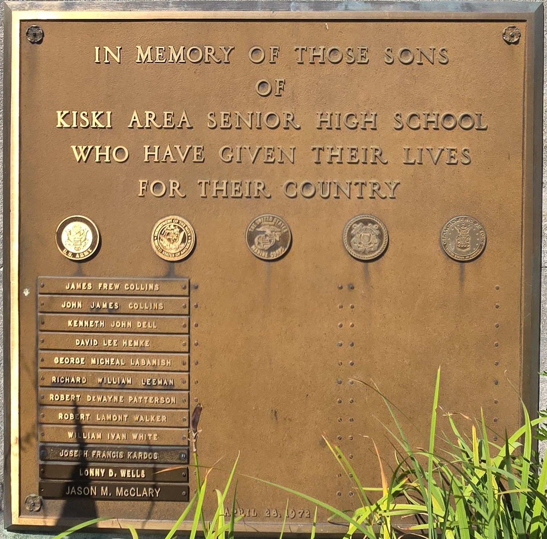 KISKI AREA SENIOR HIGH SCHOOL SUPREME SACRIFICE WAR MEMORIAL PLAQUE