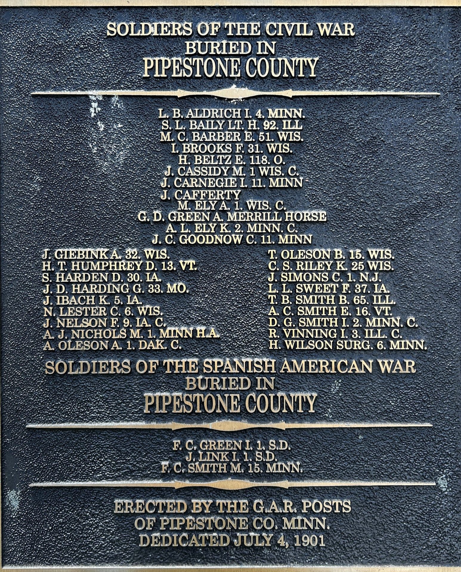 L.H. MOORE SOLDIER MEMORIAL MONUMENT PLAQUE B