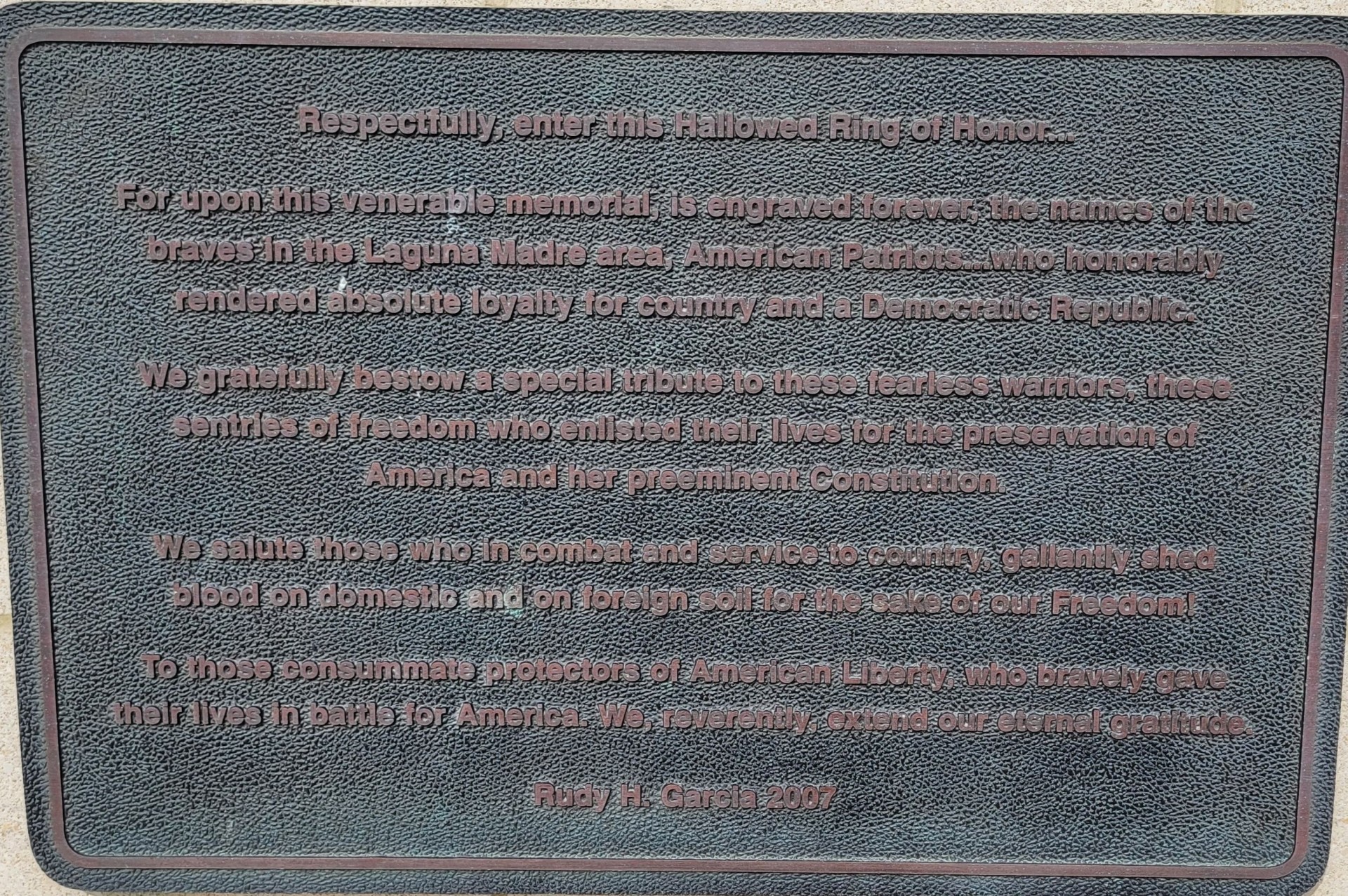 LAGUNA MADRE AREA VETERANS’ PARK WALLS OF HONOR PLAQUE A